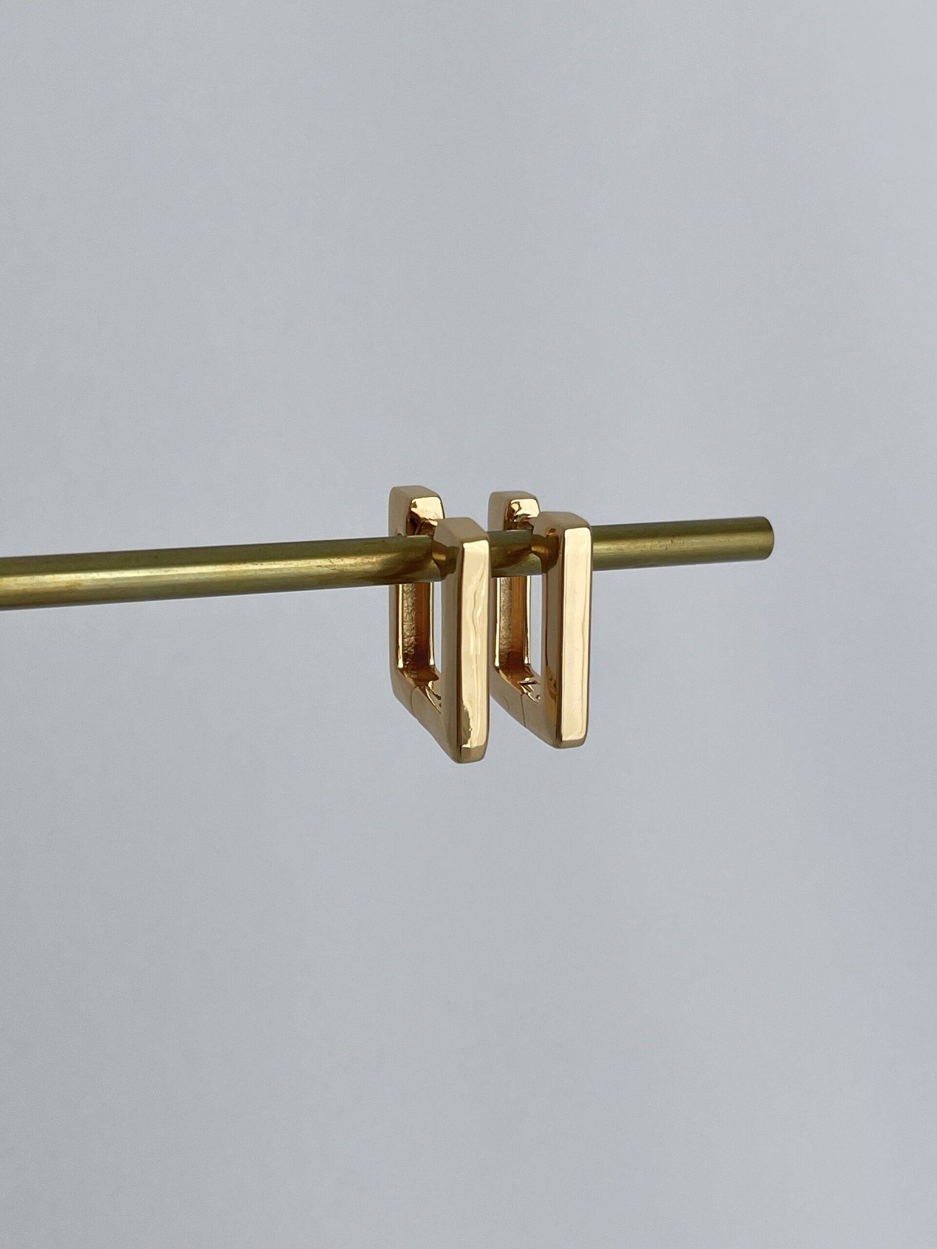 Özel Seri Dikdörtgen Tasarım Gold Halka Küpe