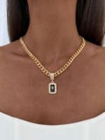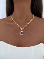 Özel Seri Dikdörtgen Yıldız Tasarım Gold Gurmet Zincir Kolye