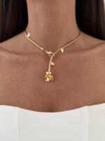 Özel Seri Dikenli Gül Tasarım Gold Kolye