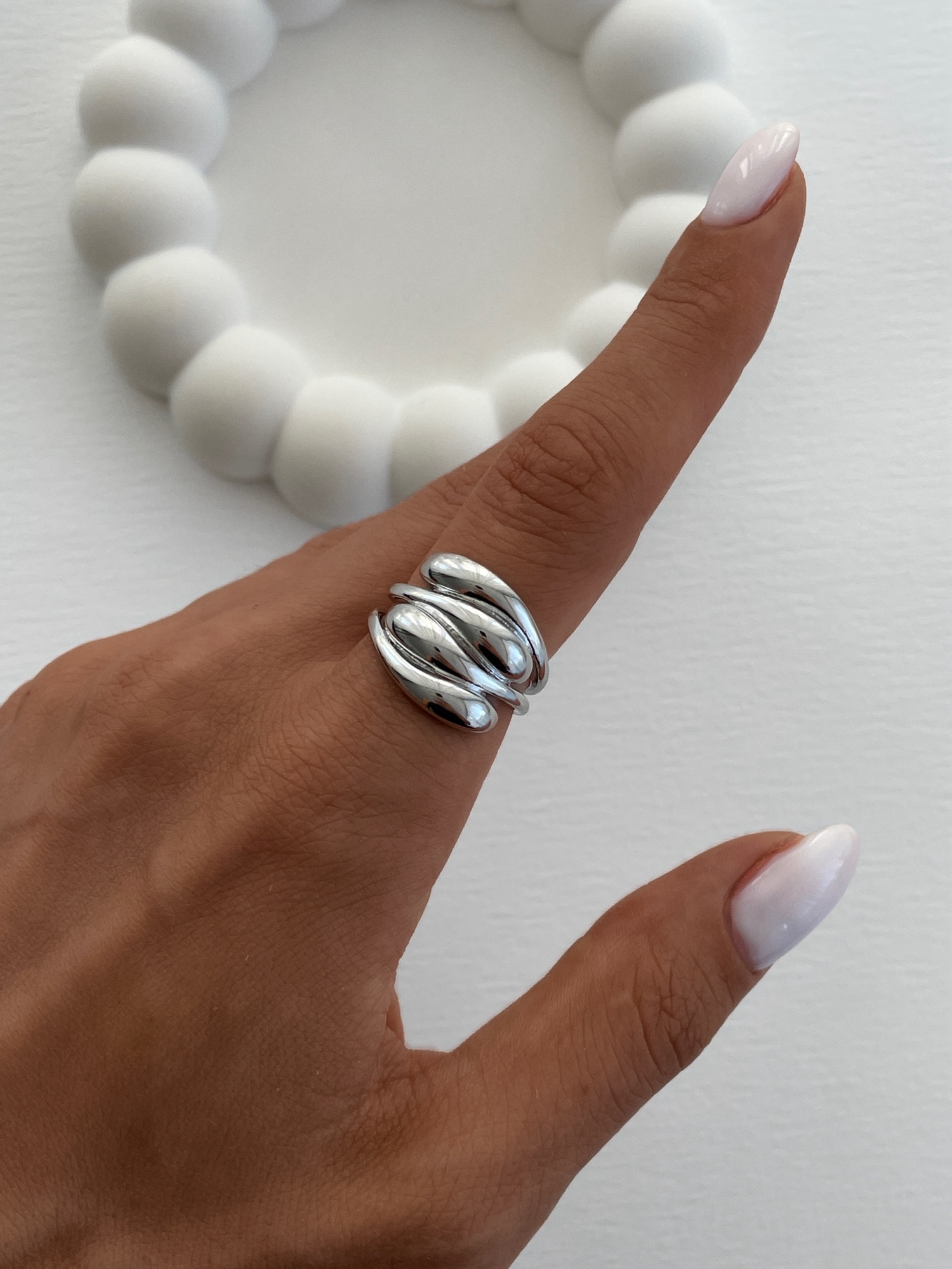 Özel Seri Dört Damla Tasarım Gümüş Ayarlanabilir Yüzük