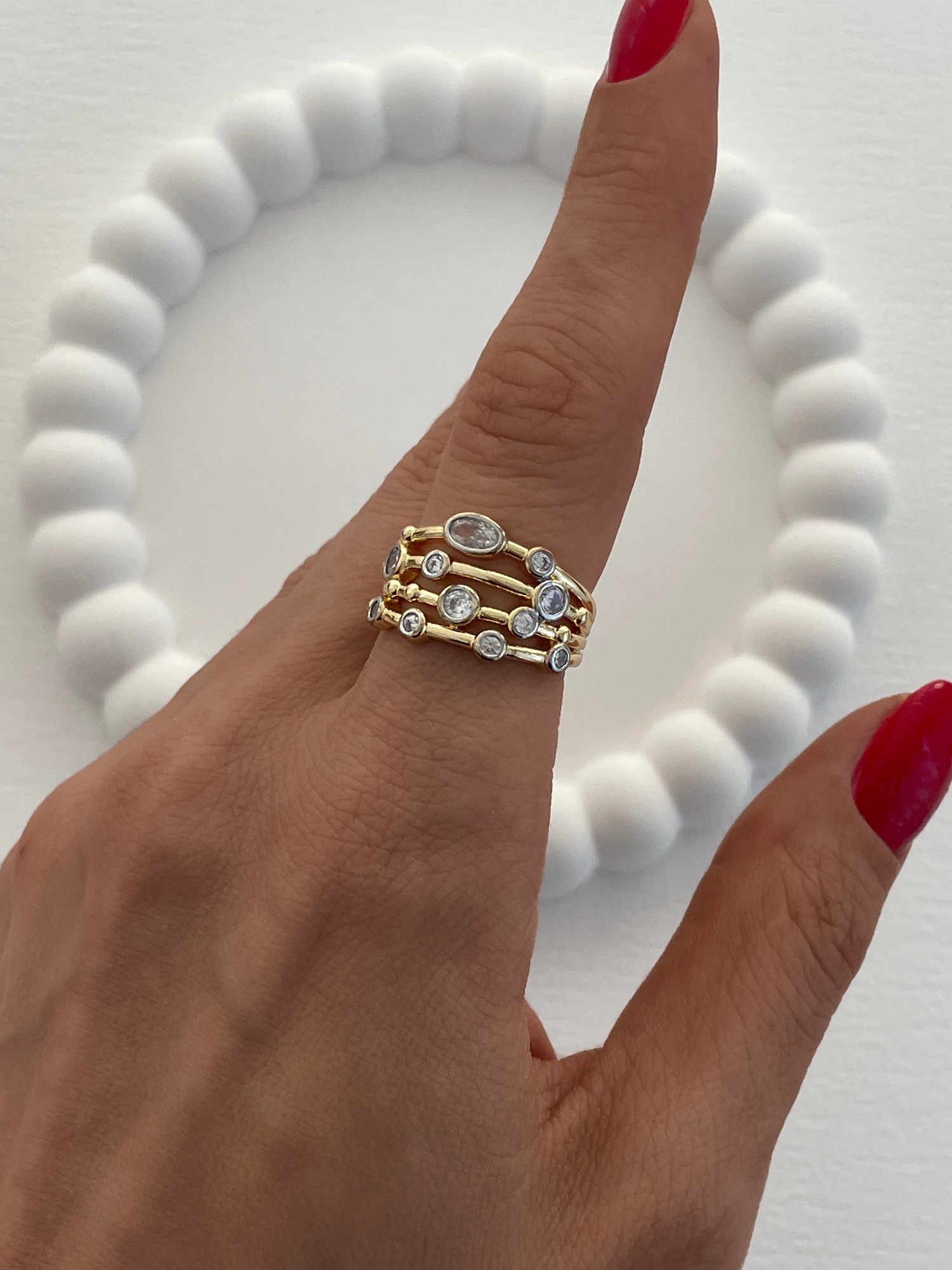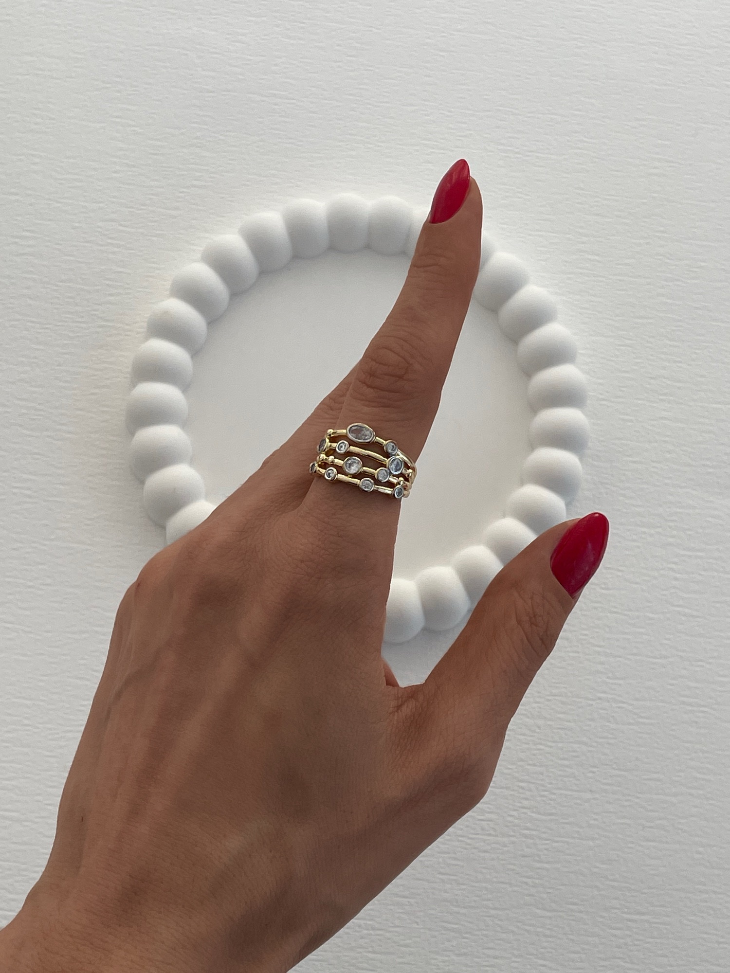 Özel Seri Dört Sıra Taş Detay Ayarlanabilir Gold Yüzük