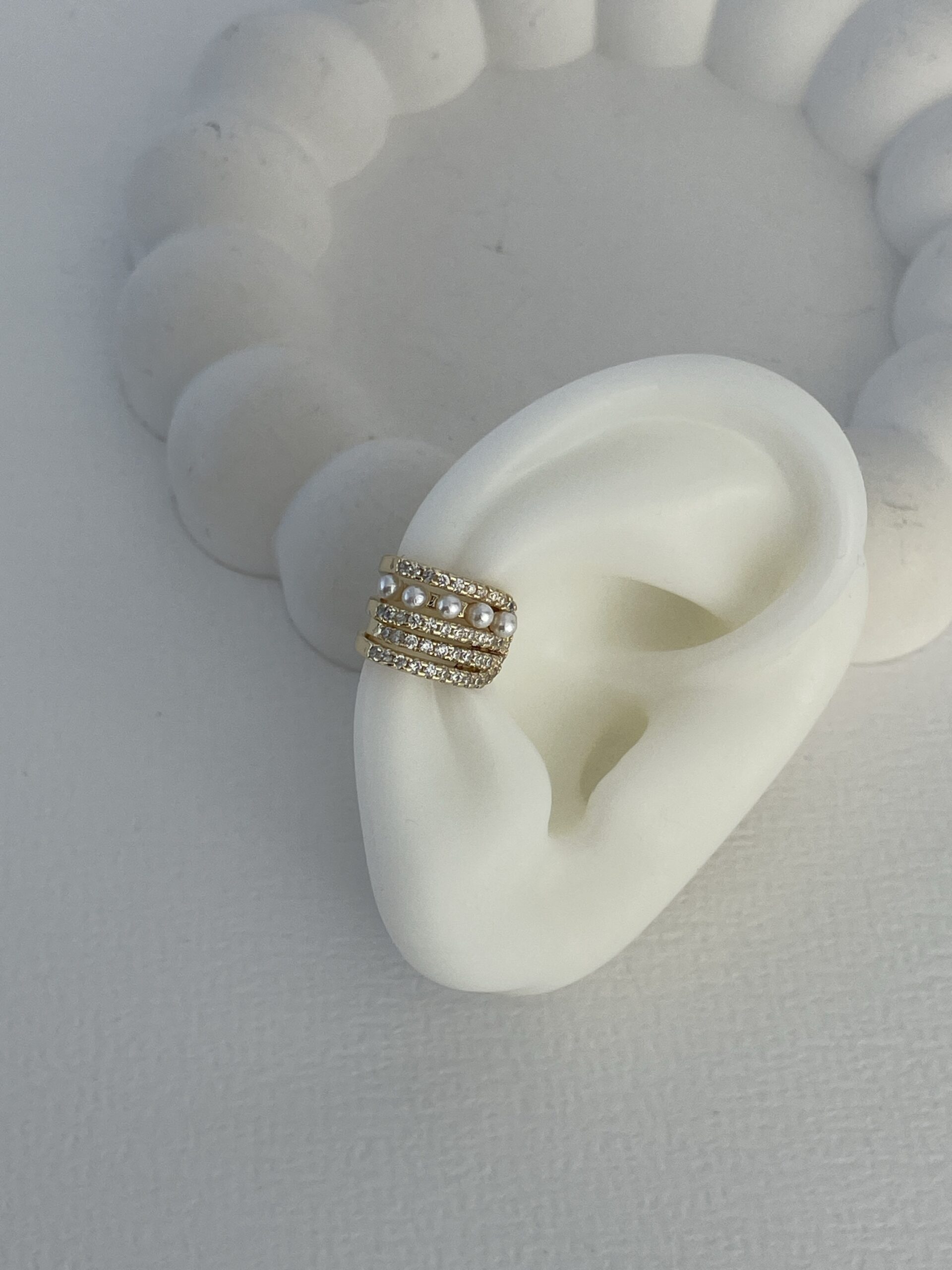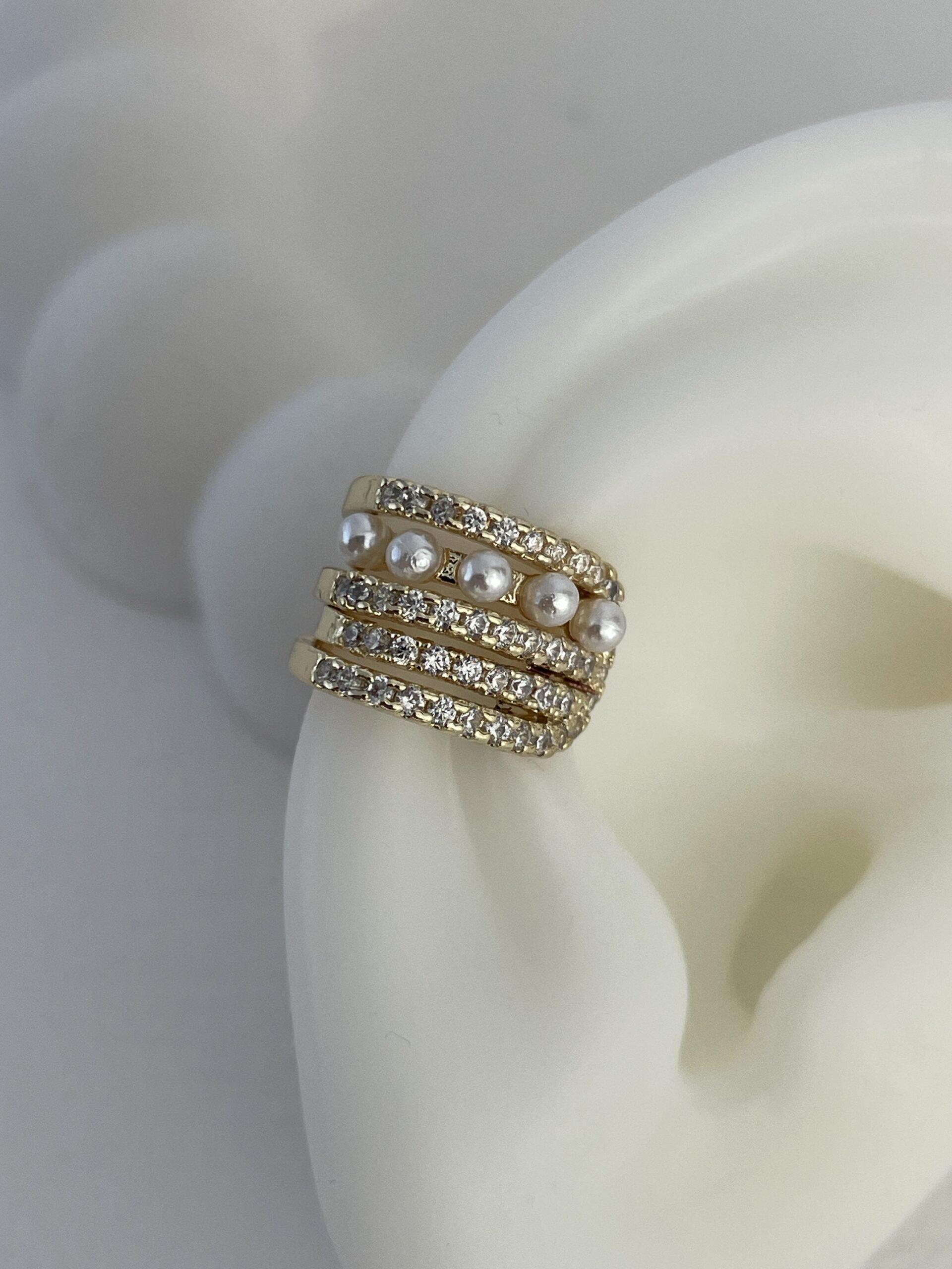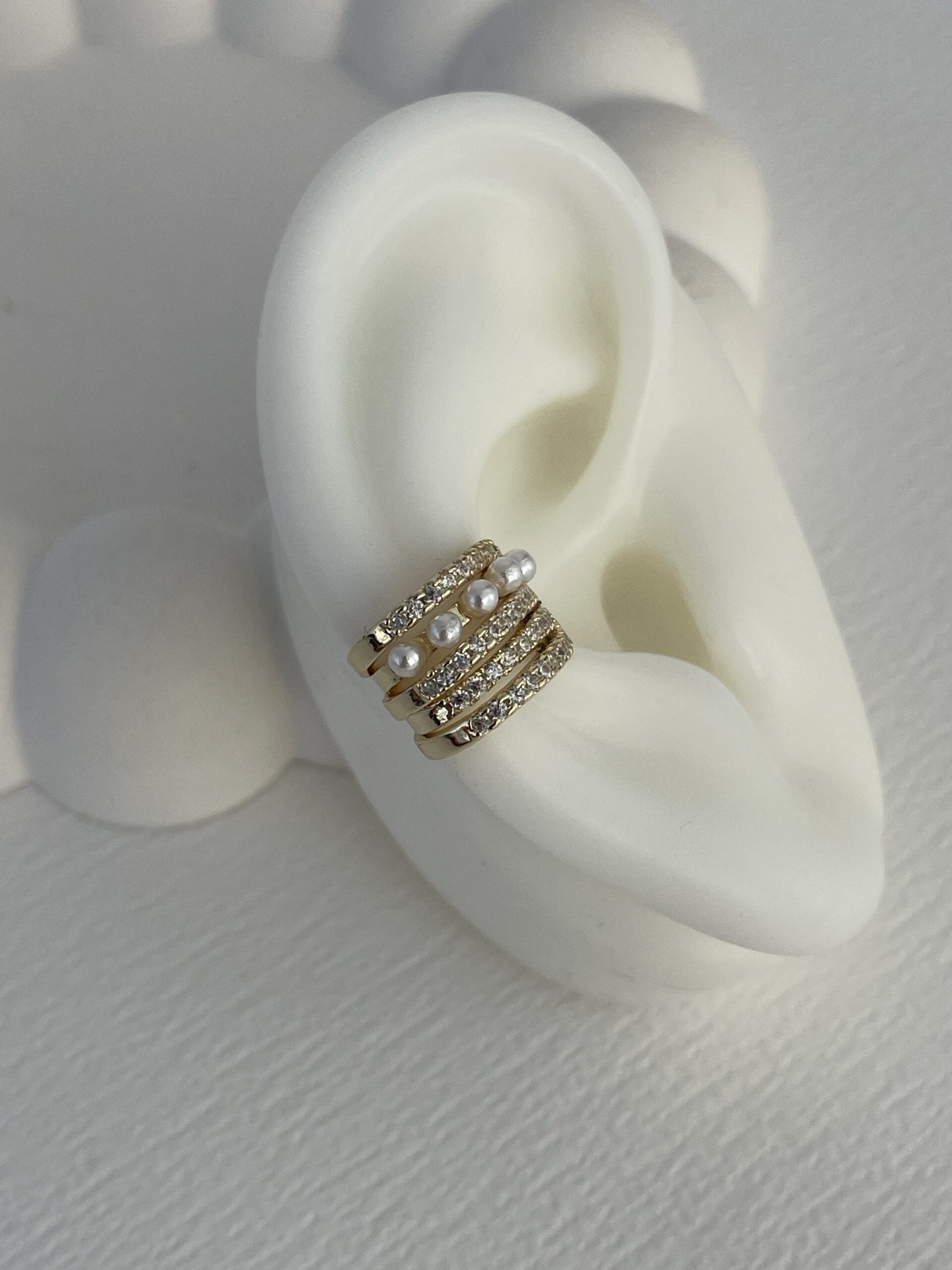Özel Seri Dörtlü Zirkon Taş İnci Detay Gold Earcuff