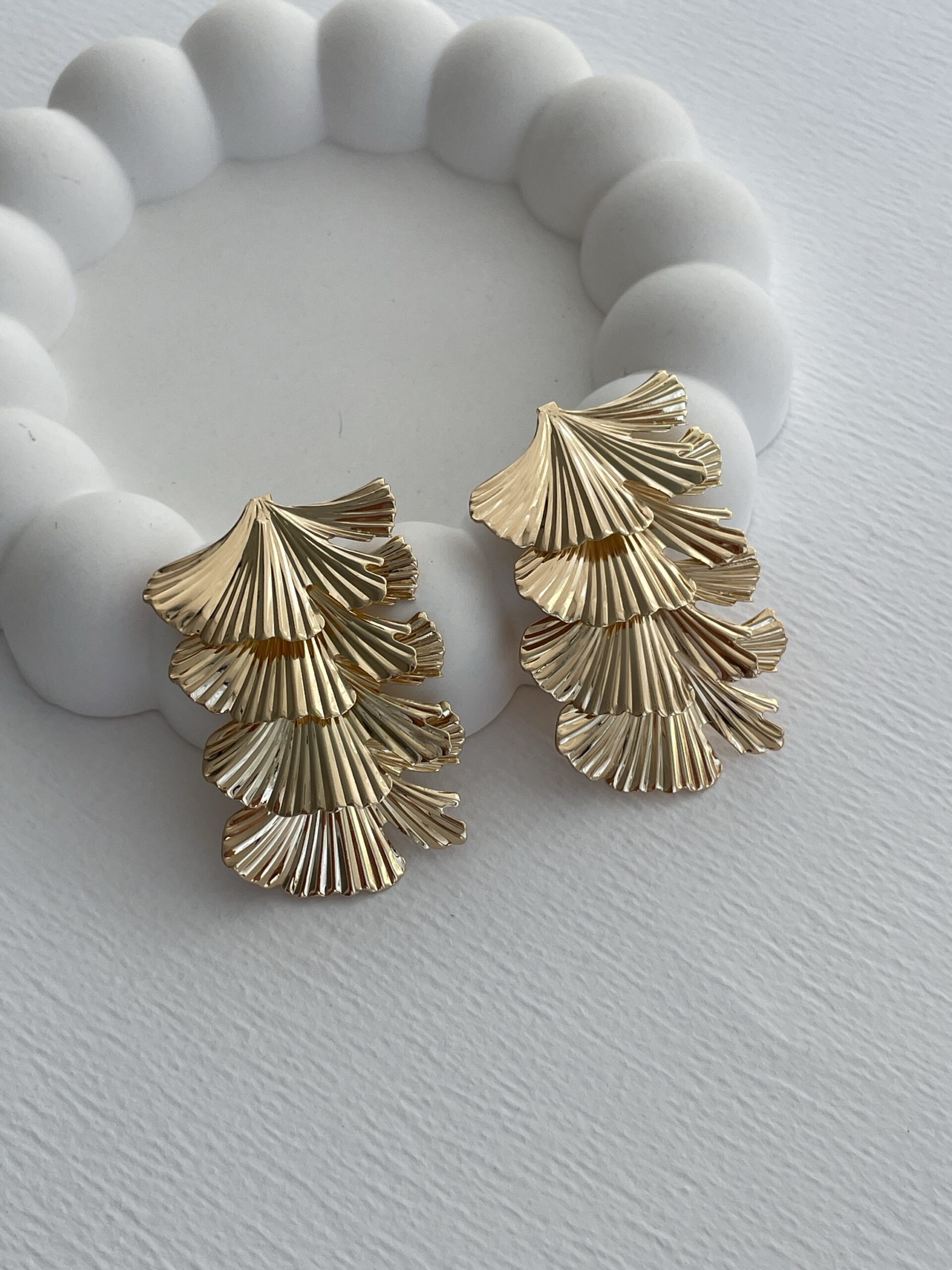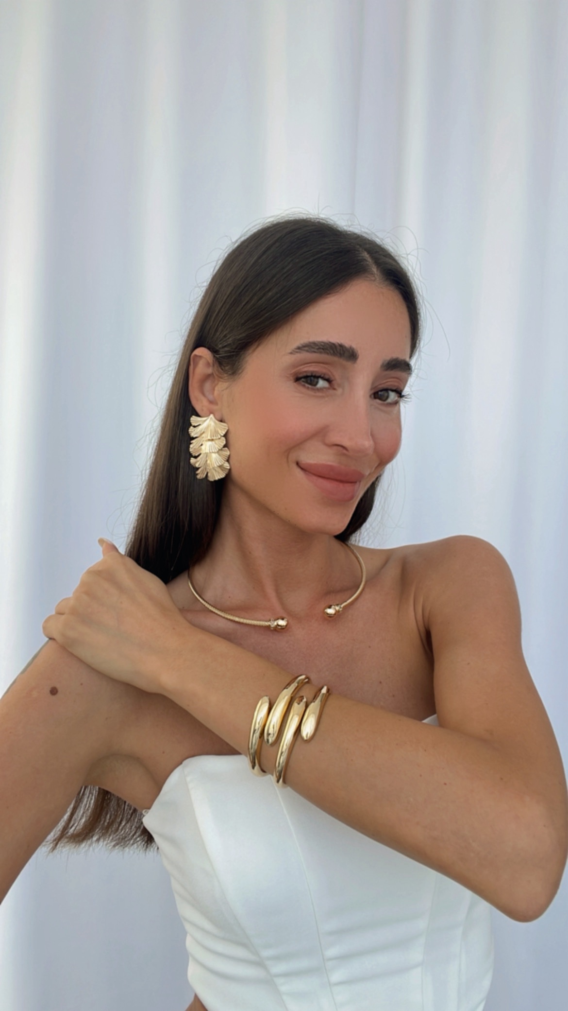 Özel Seri Dörtlü Yaprak Tasarım Gold Küpe