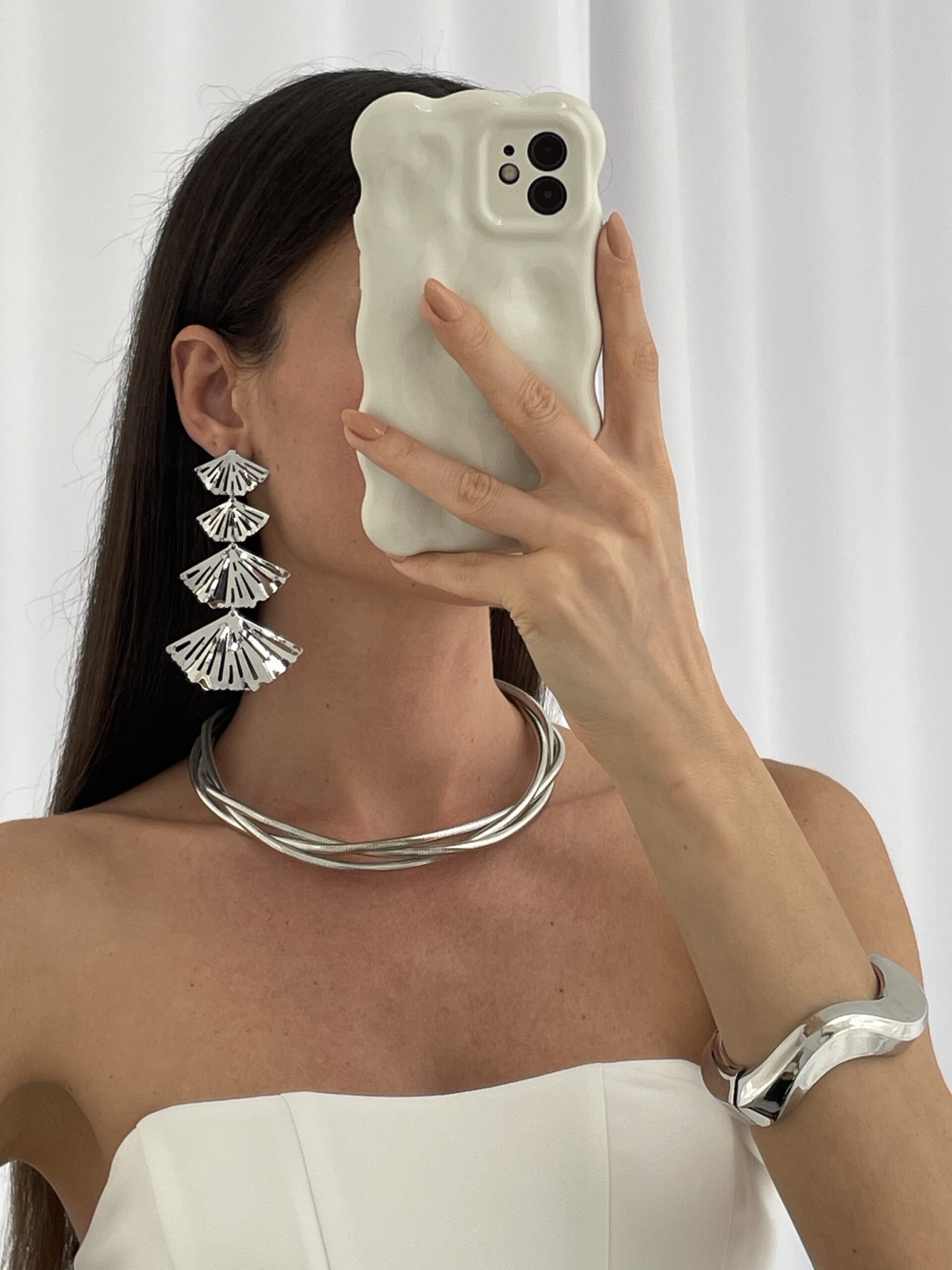 Özel Seri Dörtlü Yelpaze Model Maksi Boy Gümüş Küpe