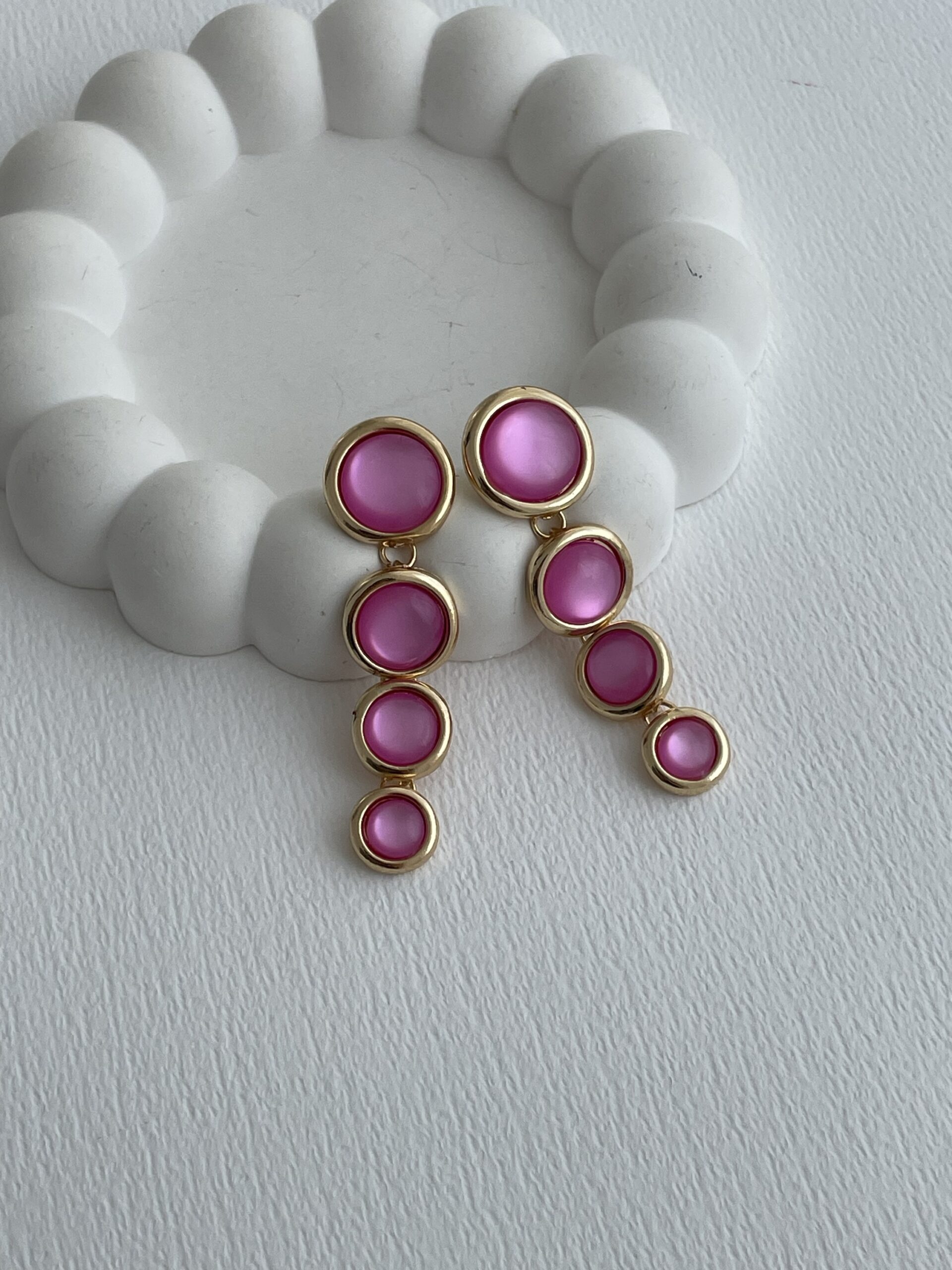 Özel Seri Dörtlü Yuvarlak Tasarım Fuşya Gold Küpe