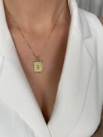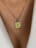 Özel Seri E Harfli Kare Plaka Altın Kaplama Kolye