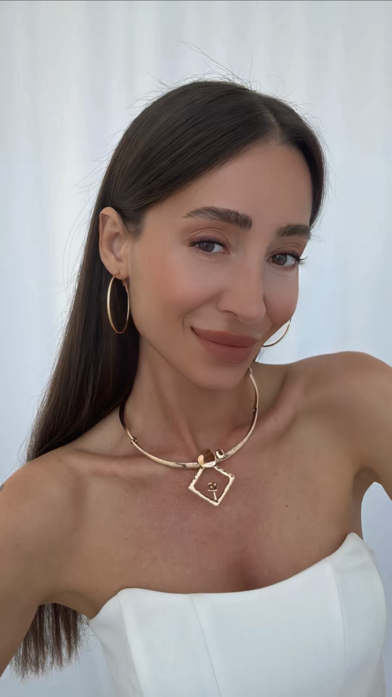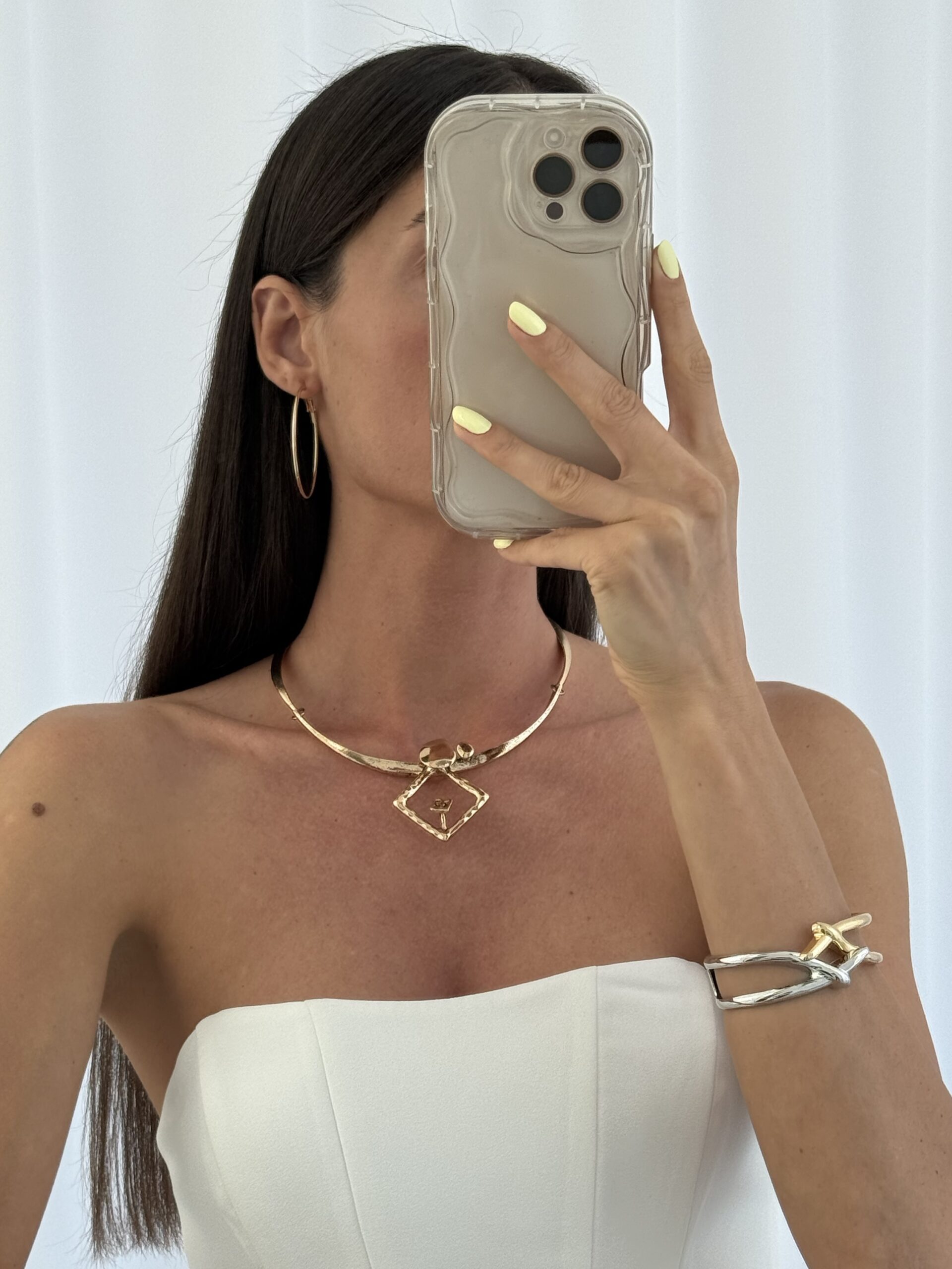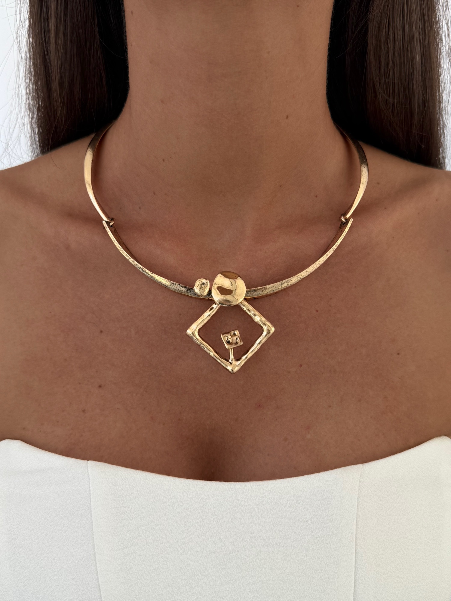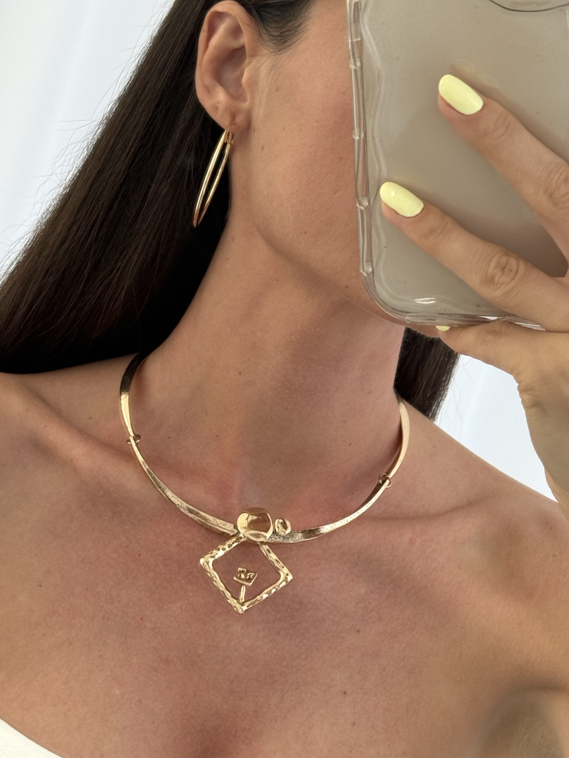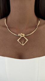 Özel Seri Eskitme Kare Tasarım Gold Marka Choker Kolye