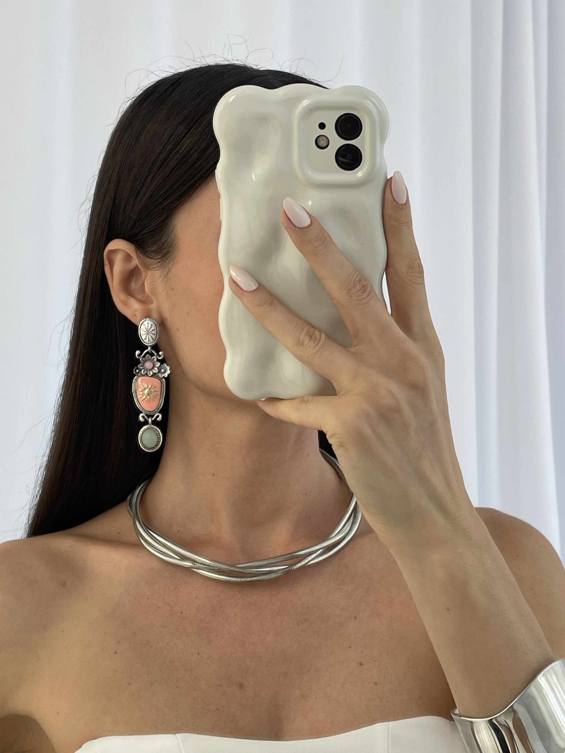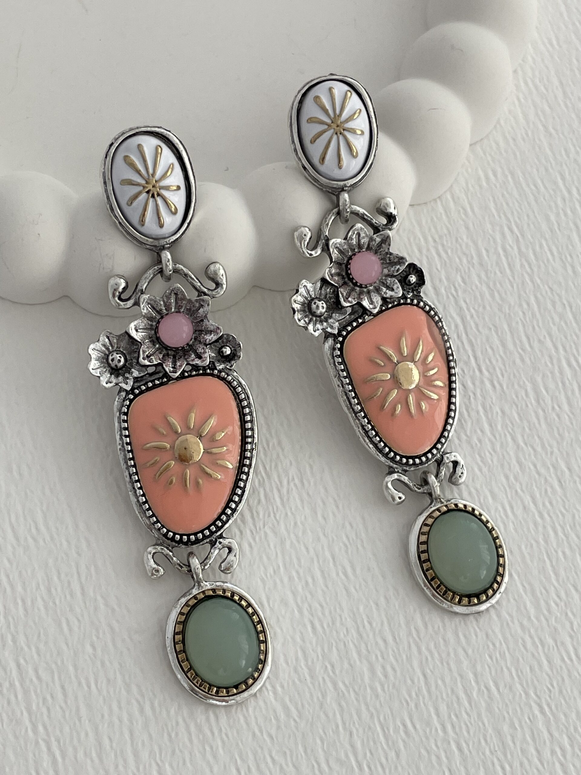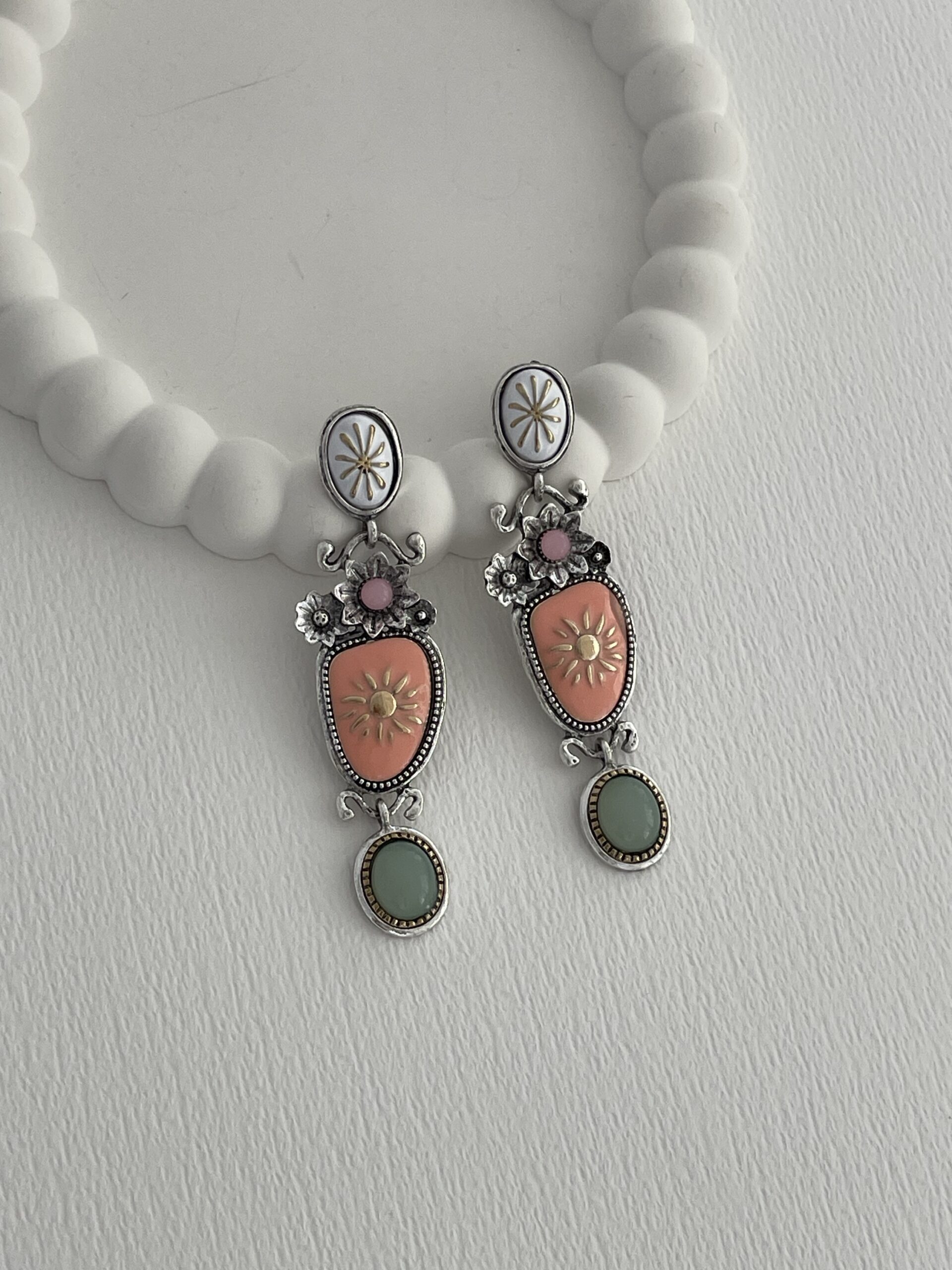Özel Seri Eskitme ZR Model Renkli Oval Tasarım Küpe