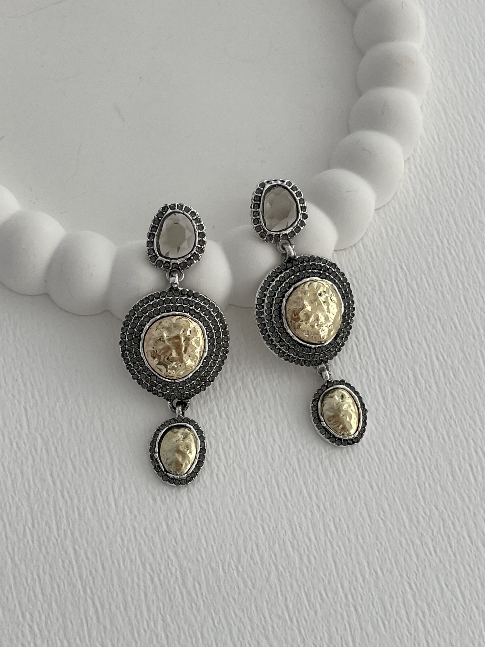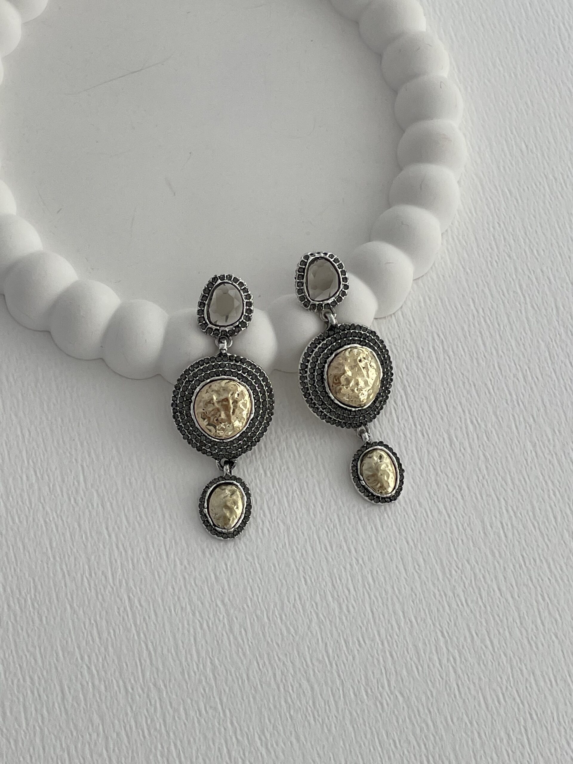 Özel Seri Eskitme ZR Model Üçlü Oval Tasarım Küpe