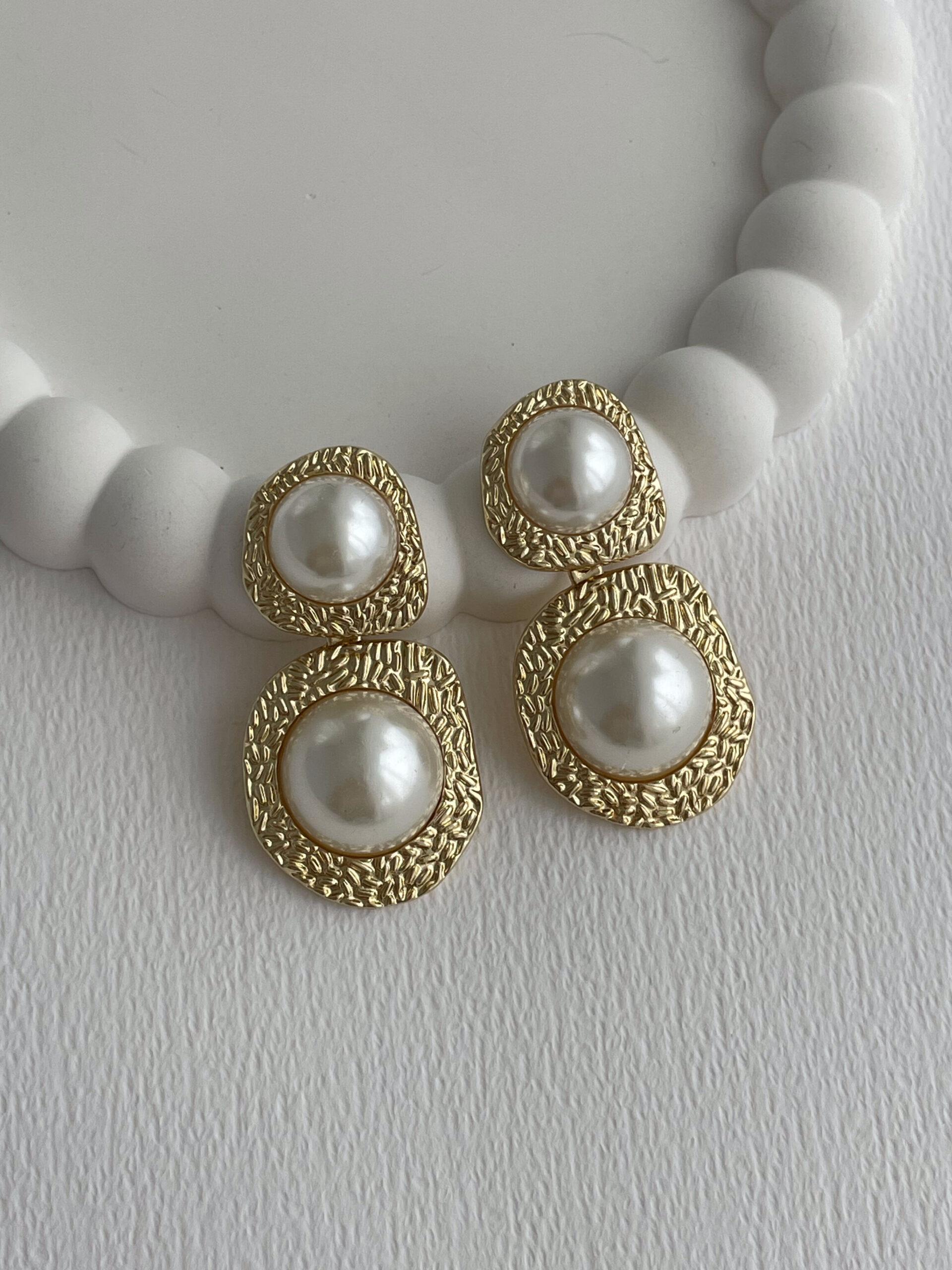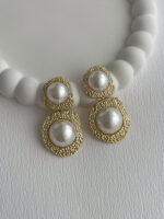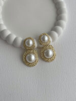 Özel Seri Etrafı Desenli İnci Top Detay Gold Küpe
