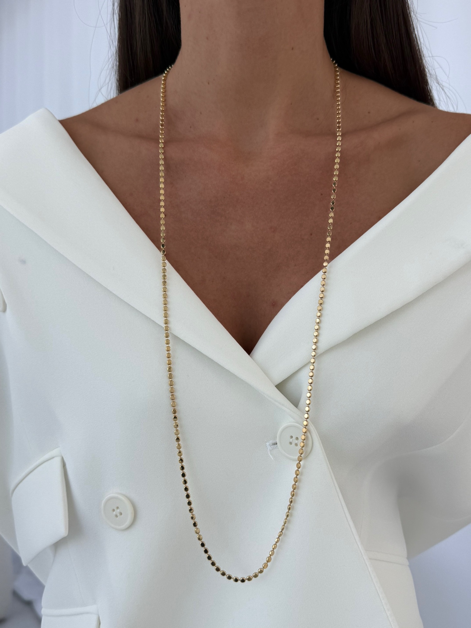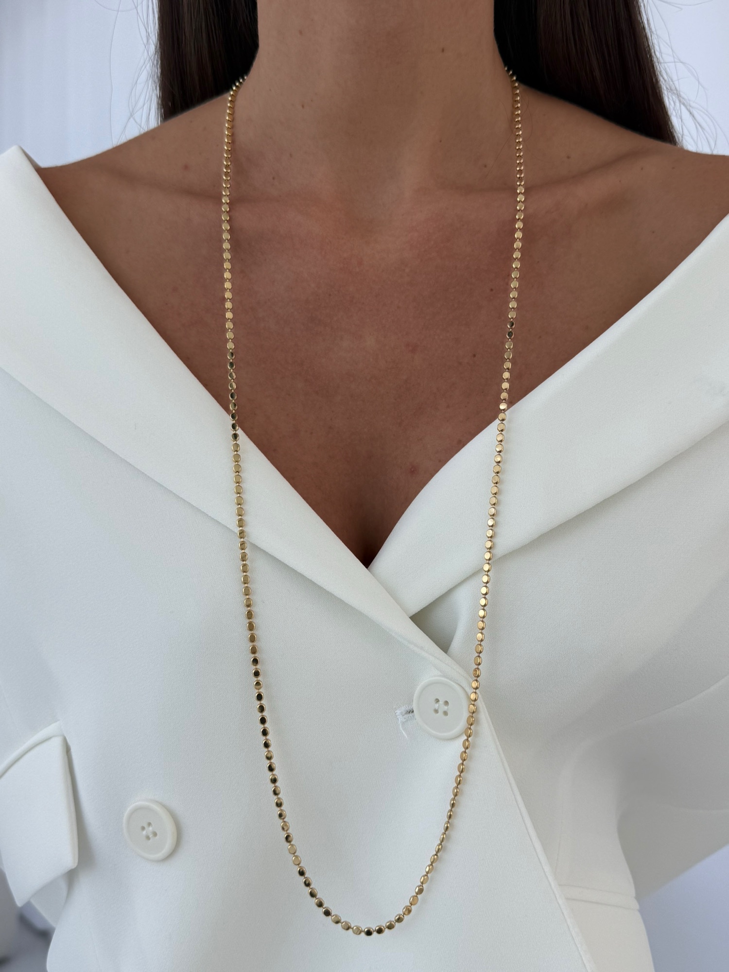 Özel Seri Ezme Yuvarlak Zincir Gold Kolye 90cm