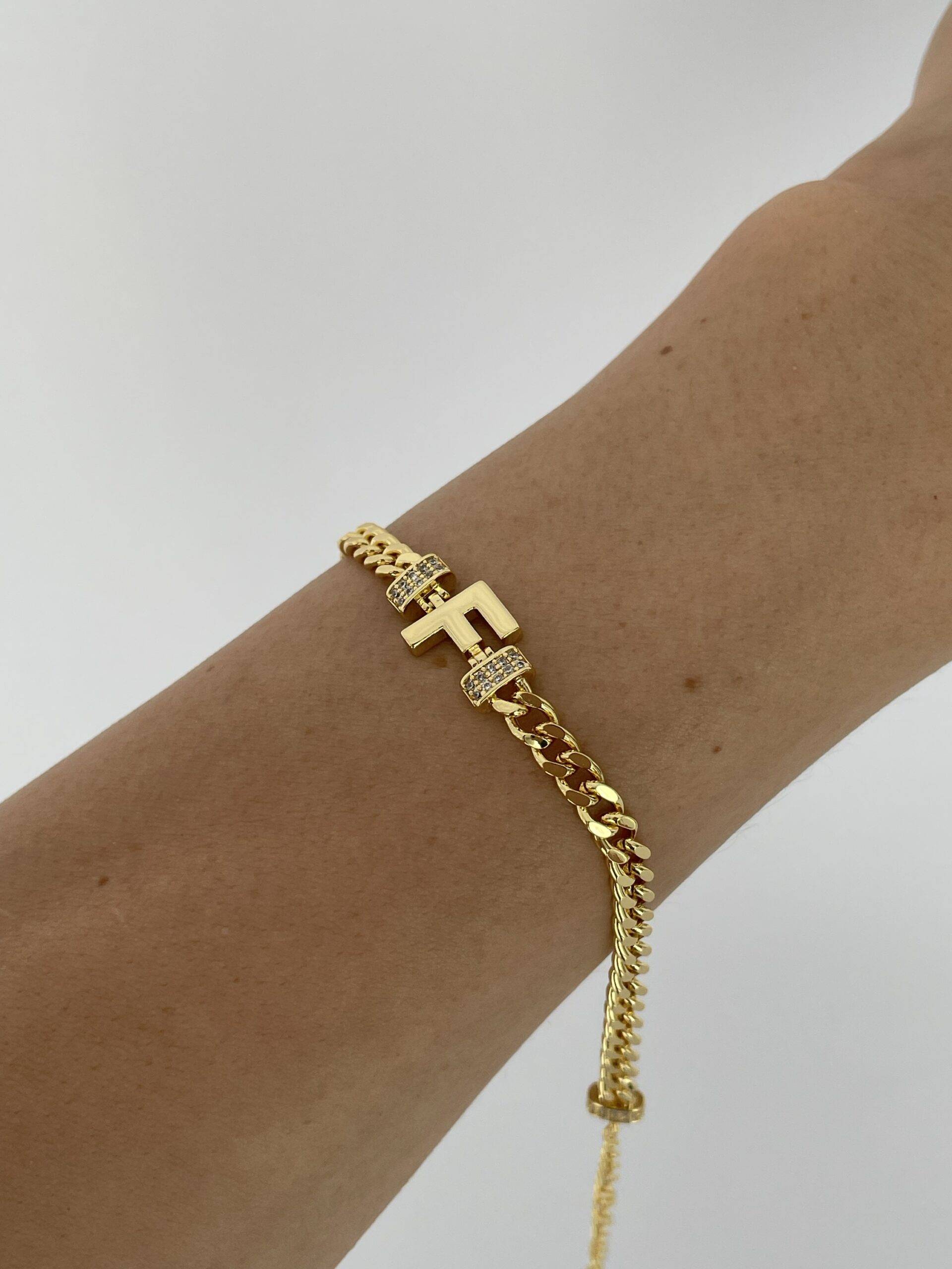Özel Seri F Harf Zirkon Taşlı Gold Bileklik