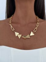 Özel Seri Figaro Zincir Üçgen Plaka Gold Kolye