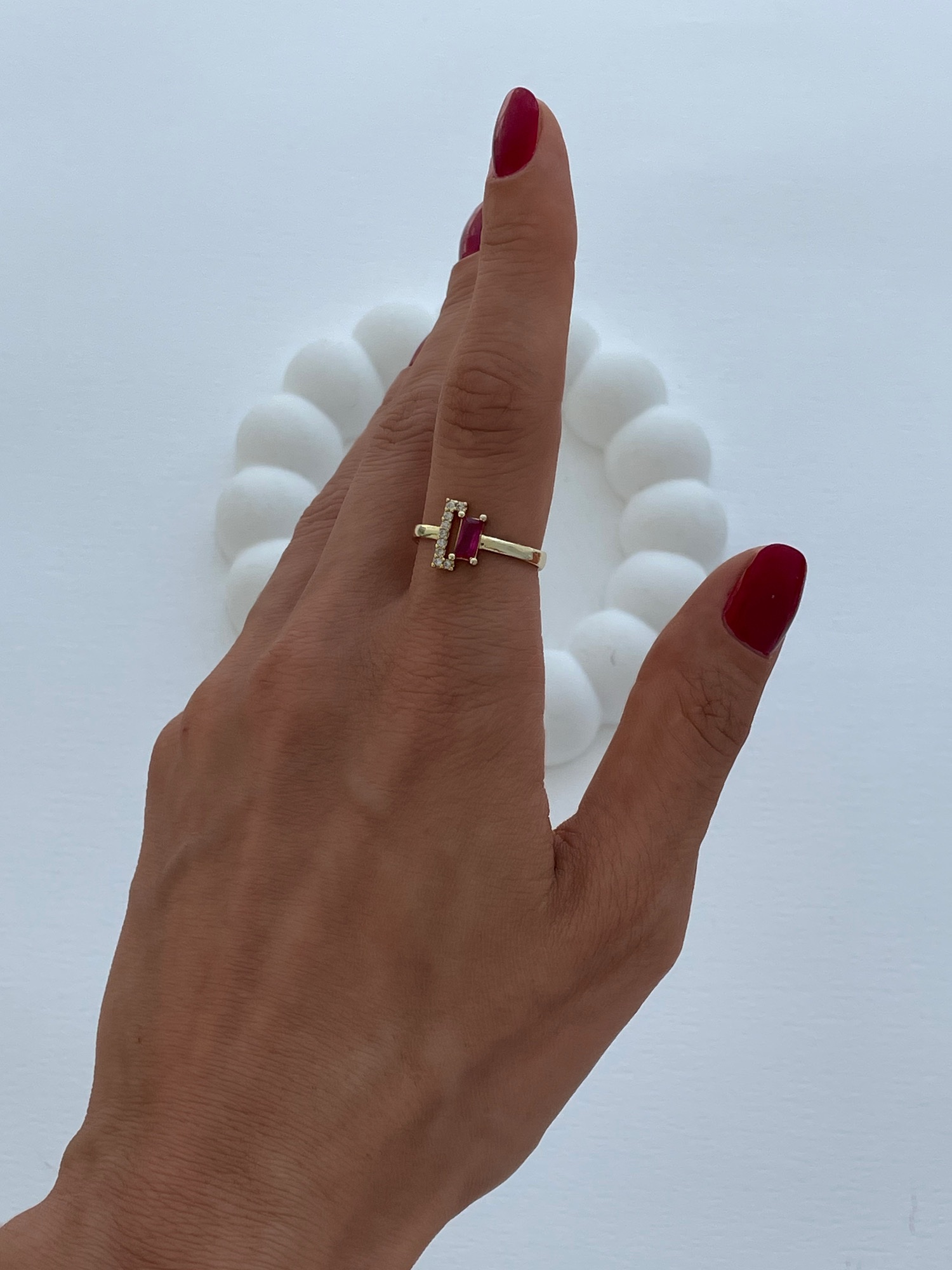Özel Seri Fuşya Baget & Zirkon Taş Gold Ayarlanabilir Yüzük