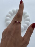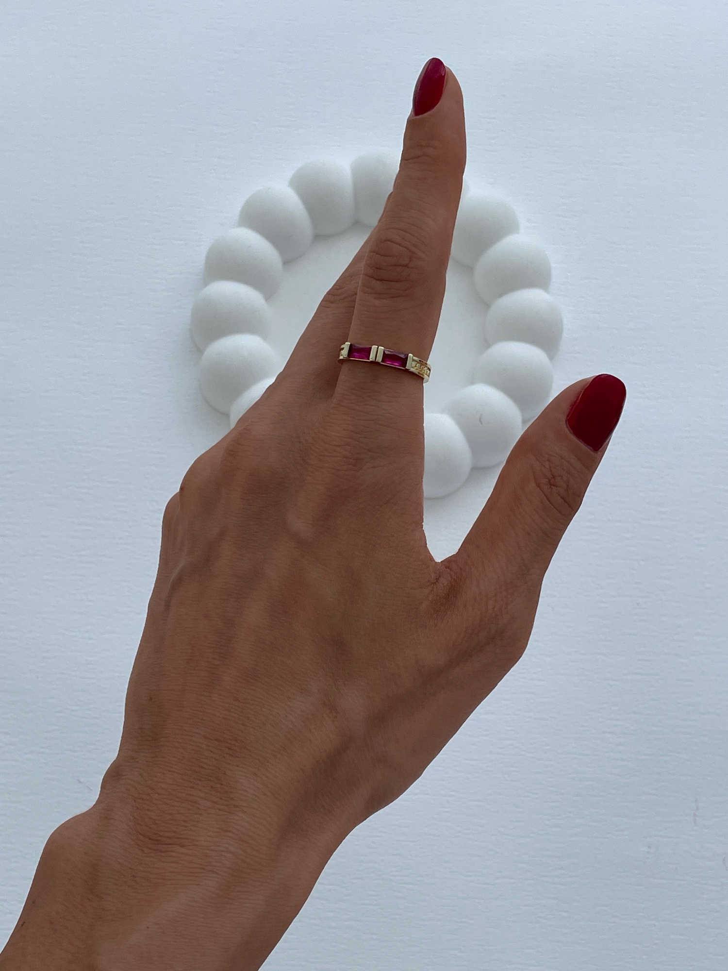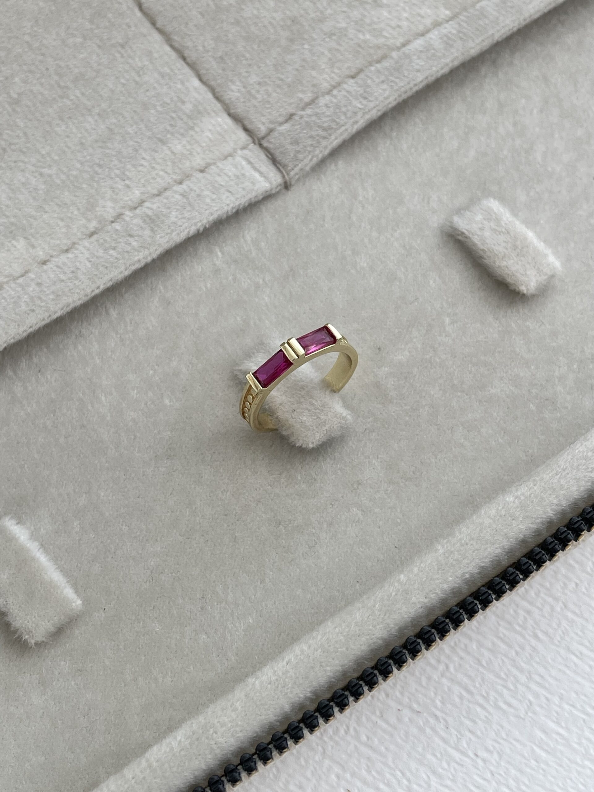 Özel Seri Fuşya İkili Baget Taş Gold Ayarlanabilir Yüzük