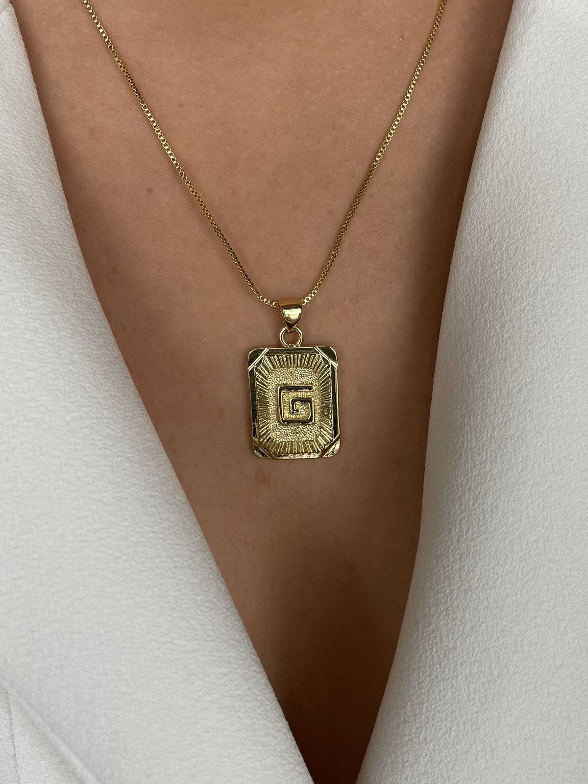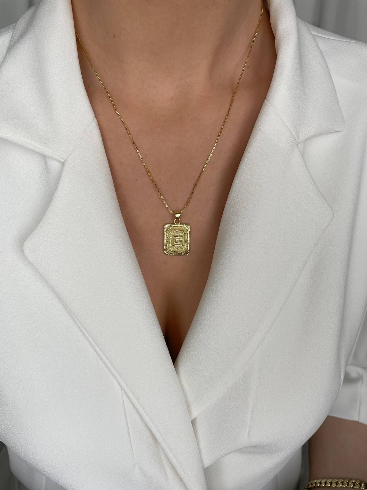 Özel Seri G Harfli Kare Plaka Altın Kaplama Kolye