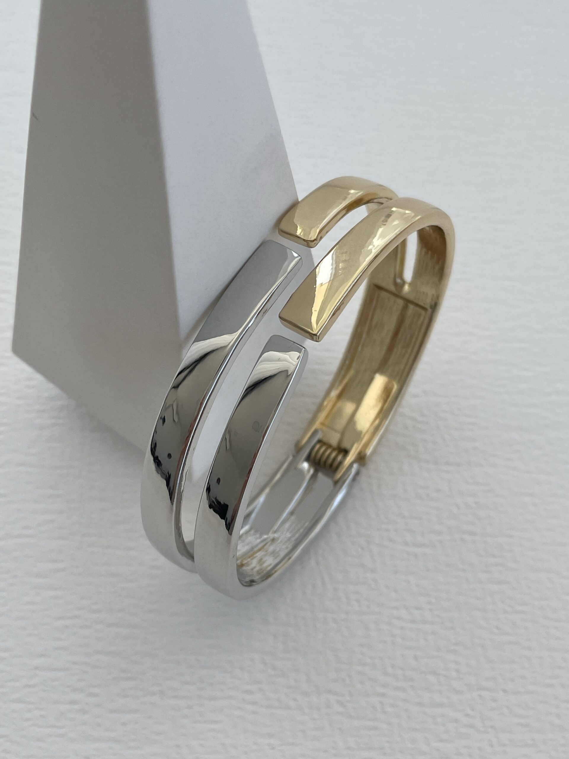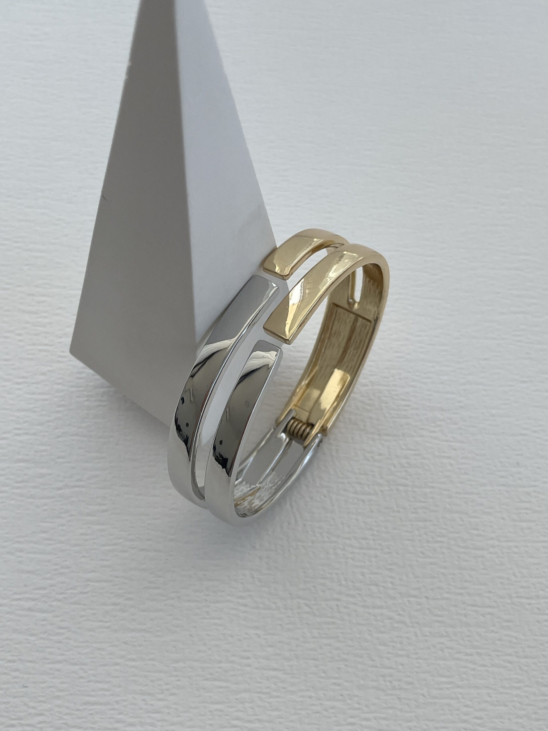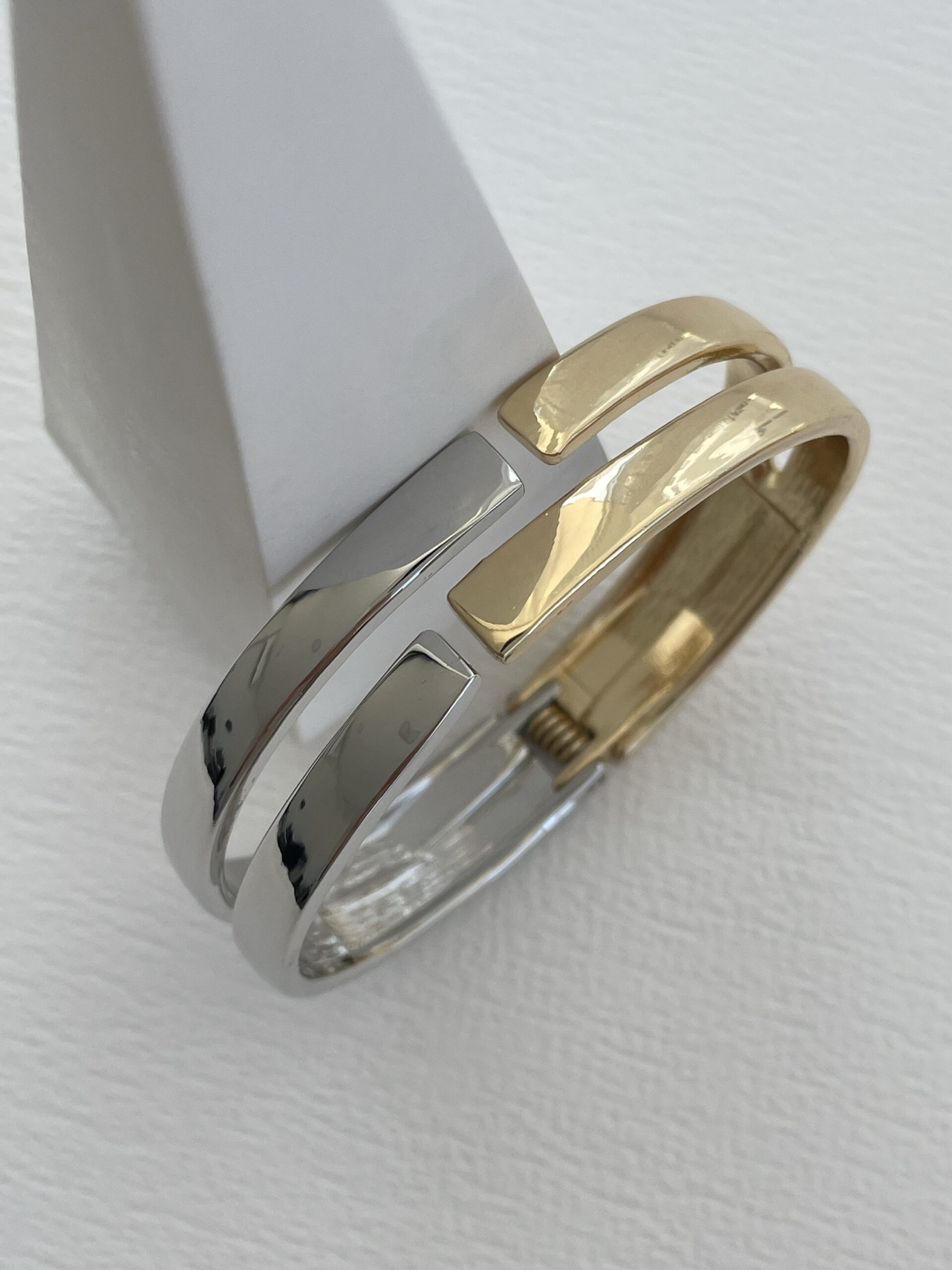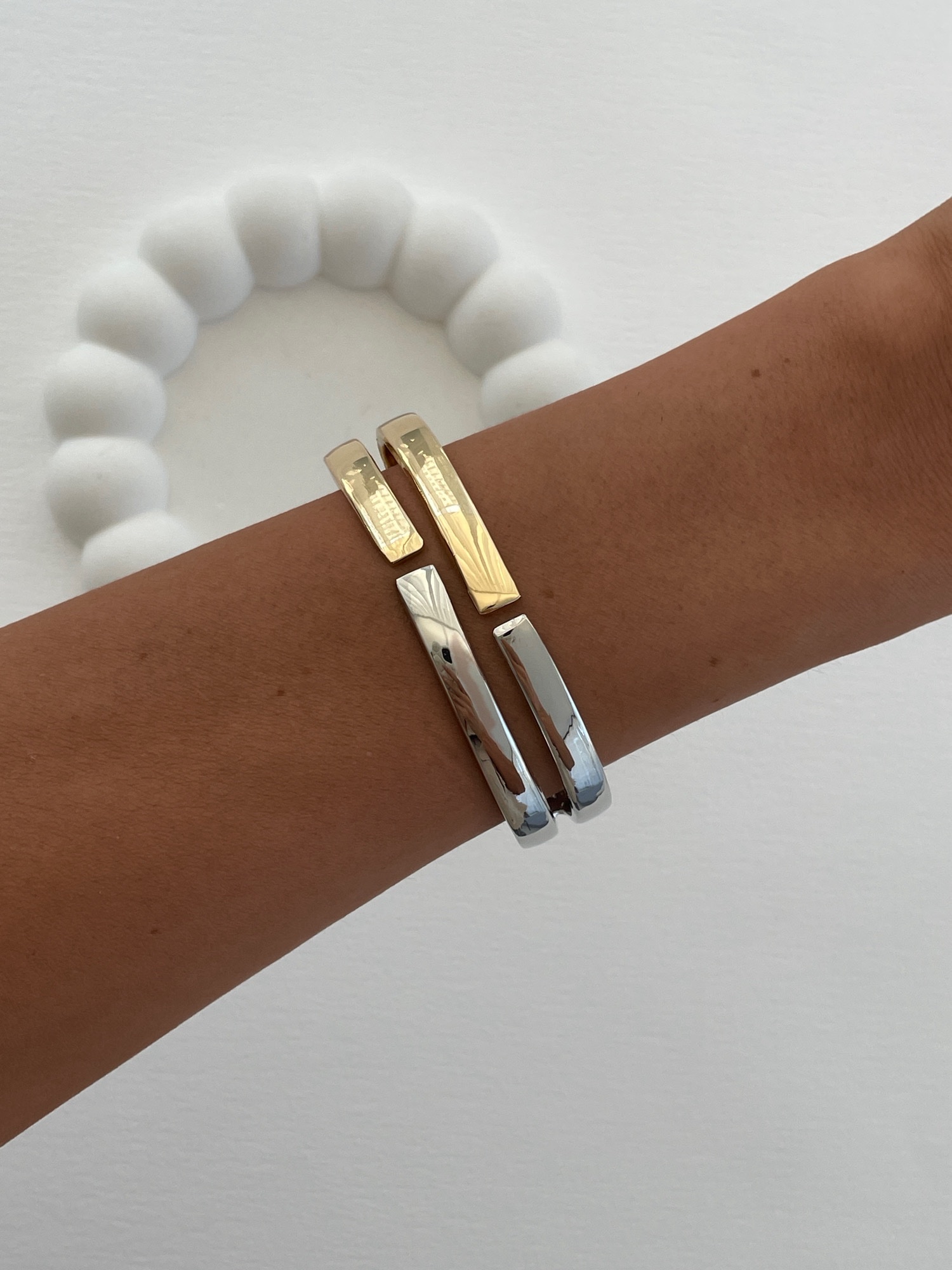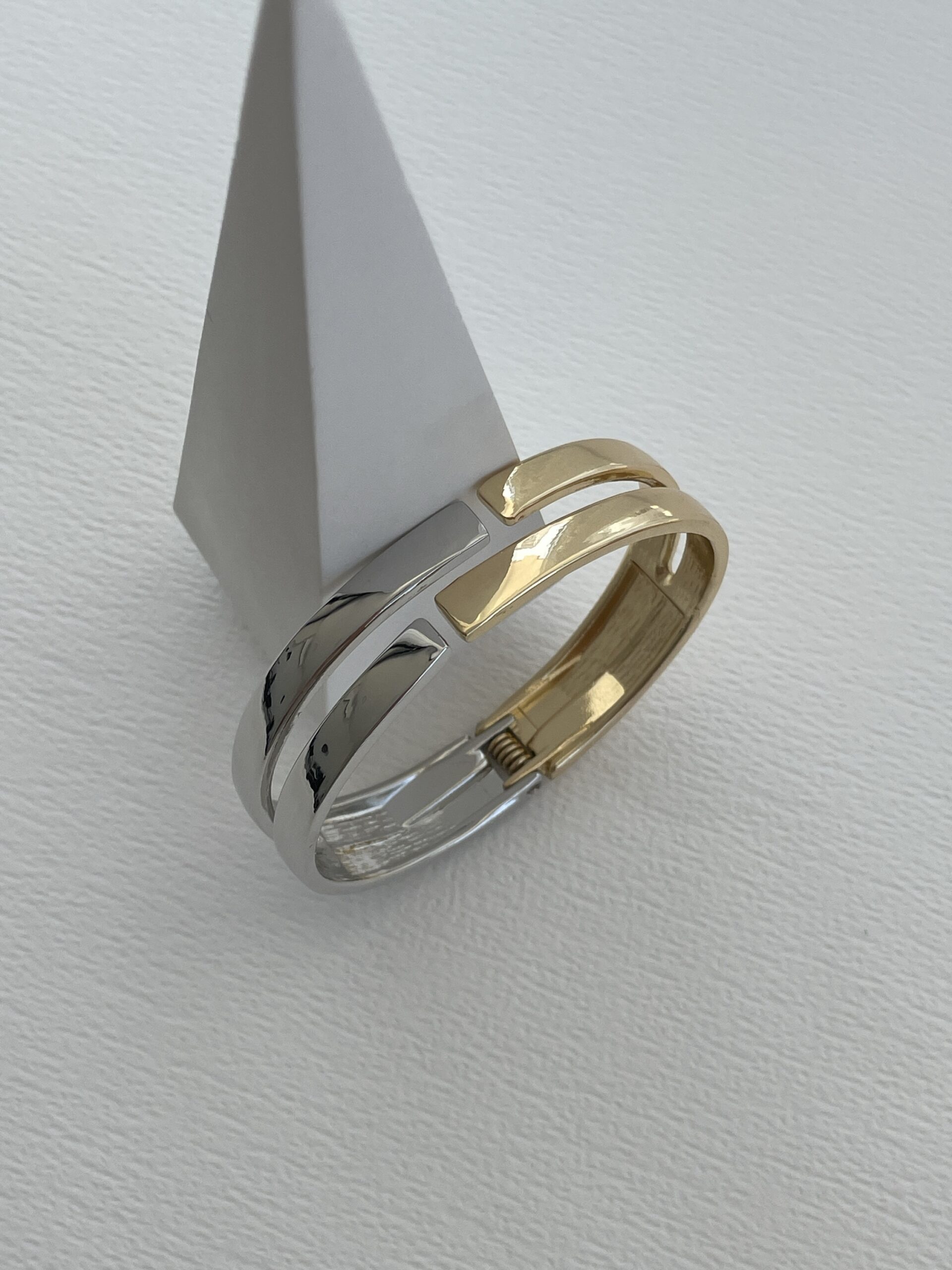 Özel Seri Geometrik Desen Gold & Gümüş Kelepçe Bileklik