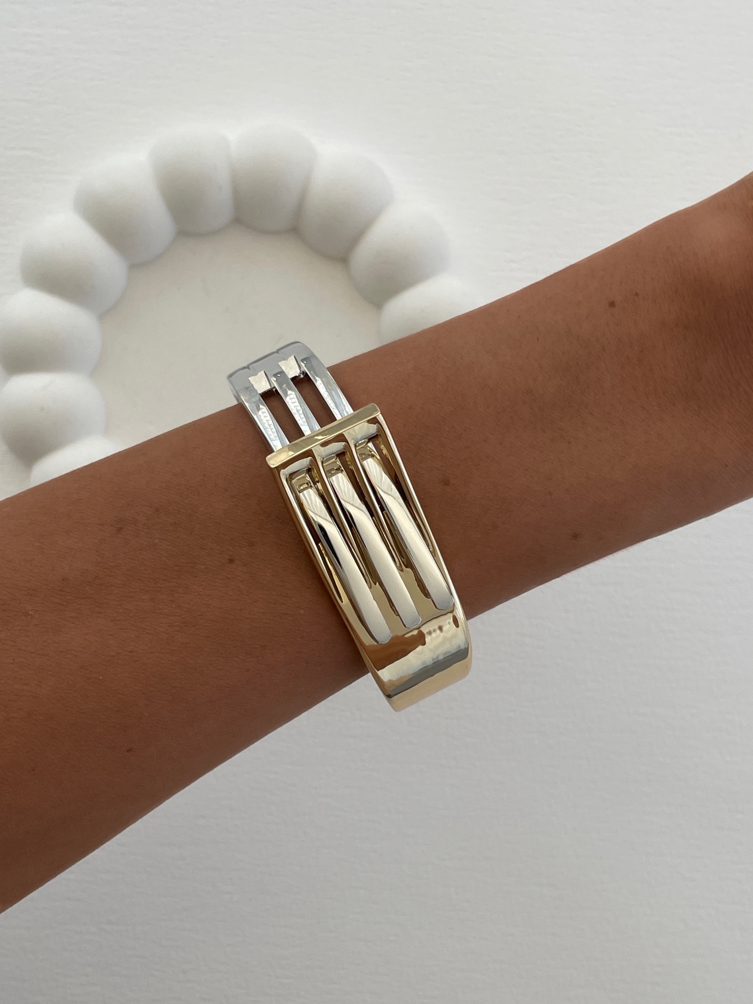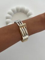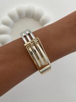Özel Seri Geometrik Desen Gold & Gümüş Kelepçe Bileklik