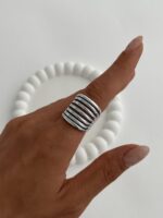 Özel Seri Geometrik Desen Gümüş Ayarlanabilir Yüzük