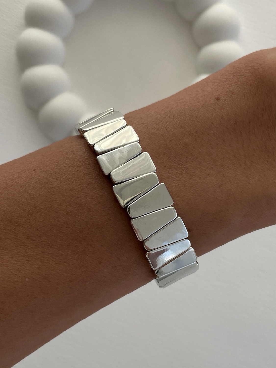 Özel Seri Geometrik Desen Lastikli Gümüş Bileklik
