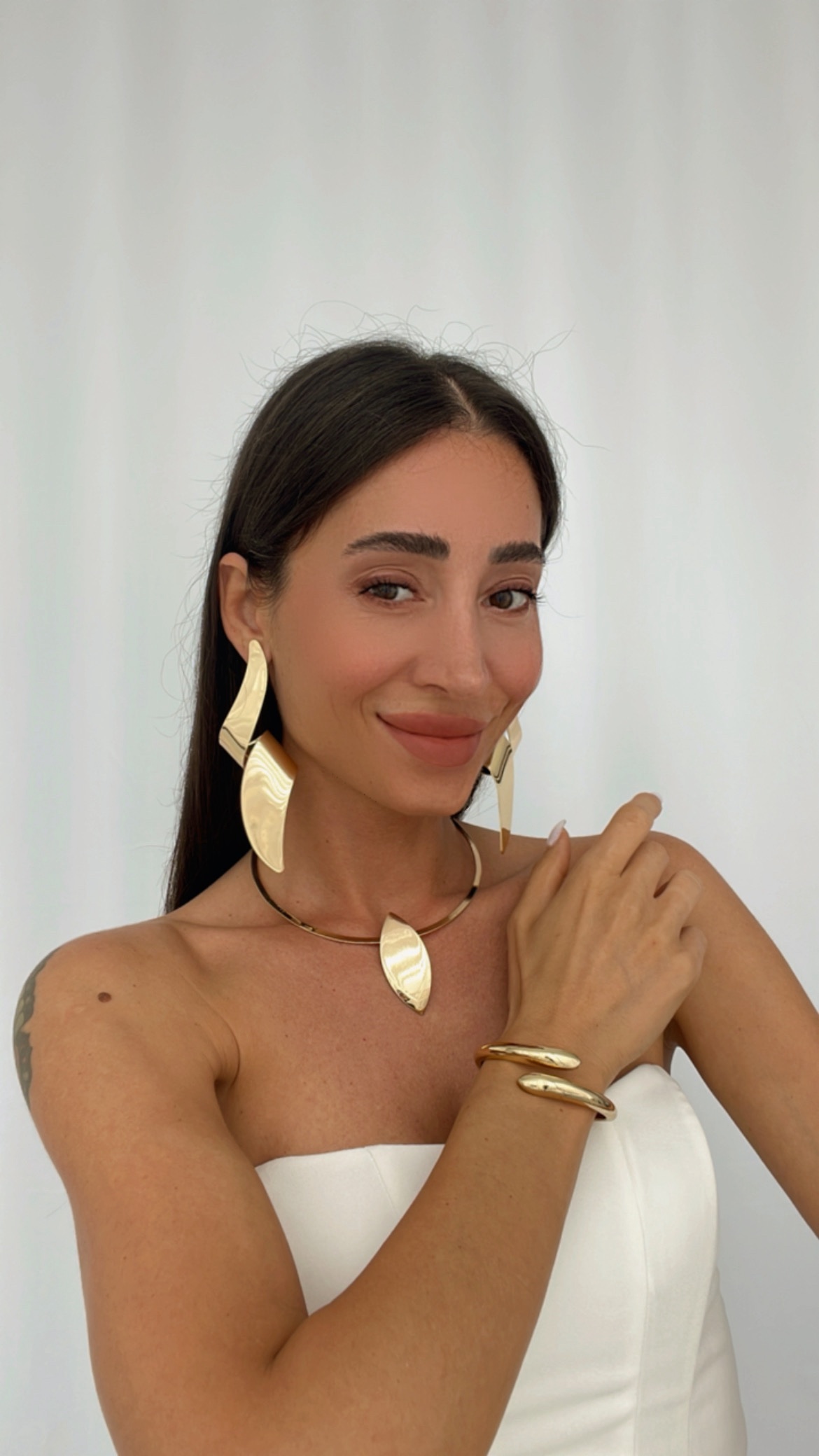 Özel Seri Geometrik Desen Maksi Boy Gold Küpe