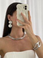 Özel Seri Geometrik Desen Maksi Boy Gümüş Küpe