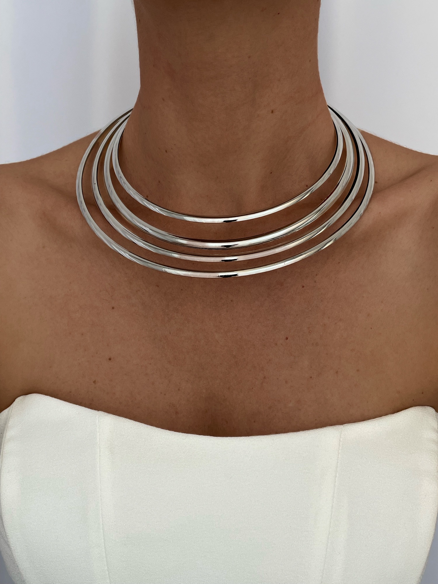 Özel Seri Geometrik Desen Marka Model Gümüş Choker Kolye