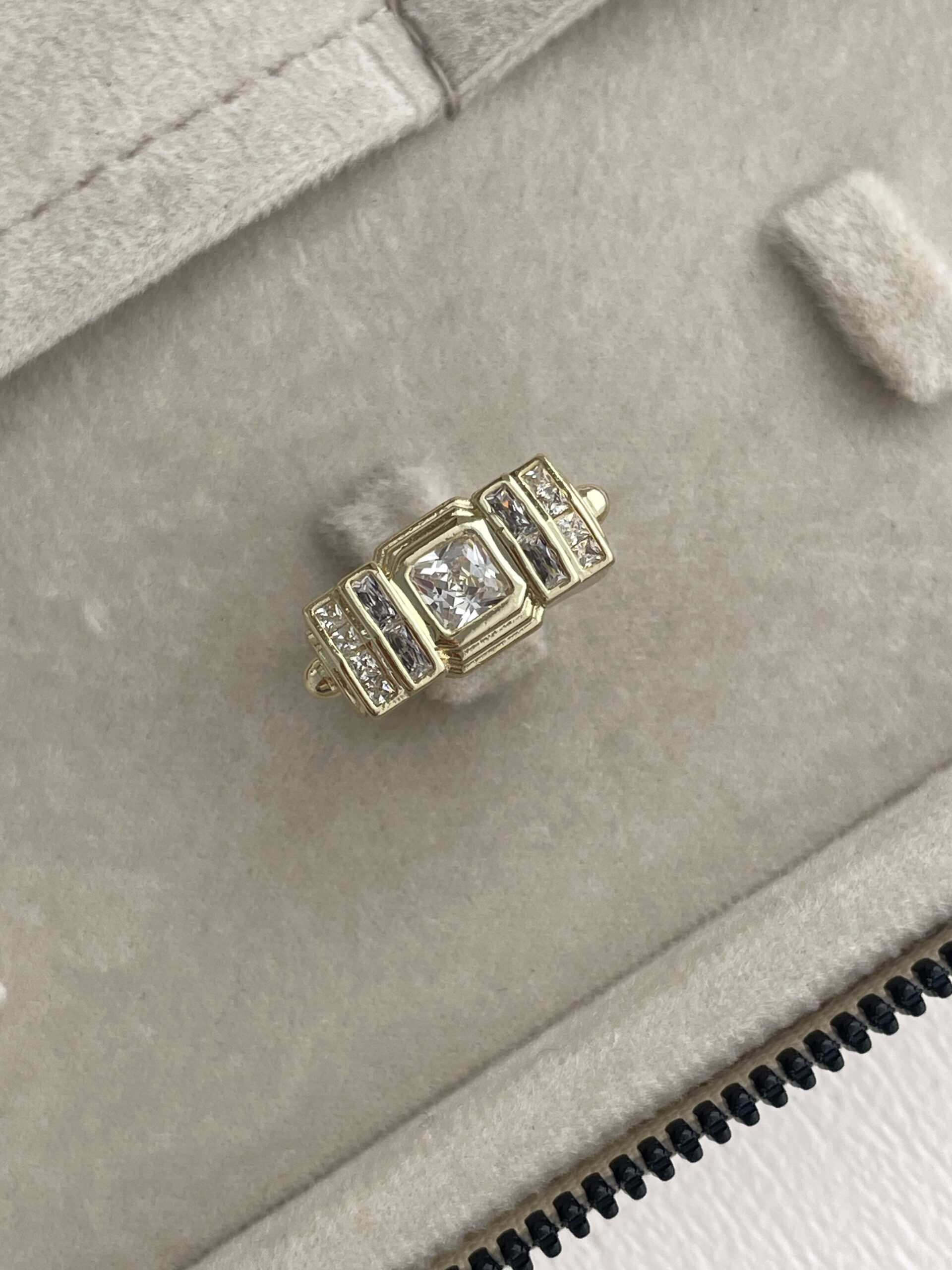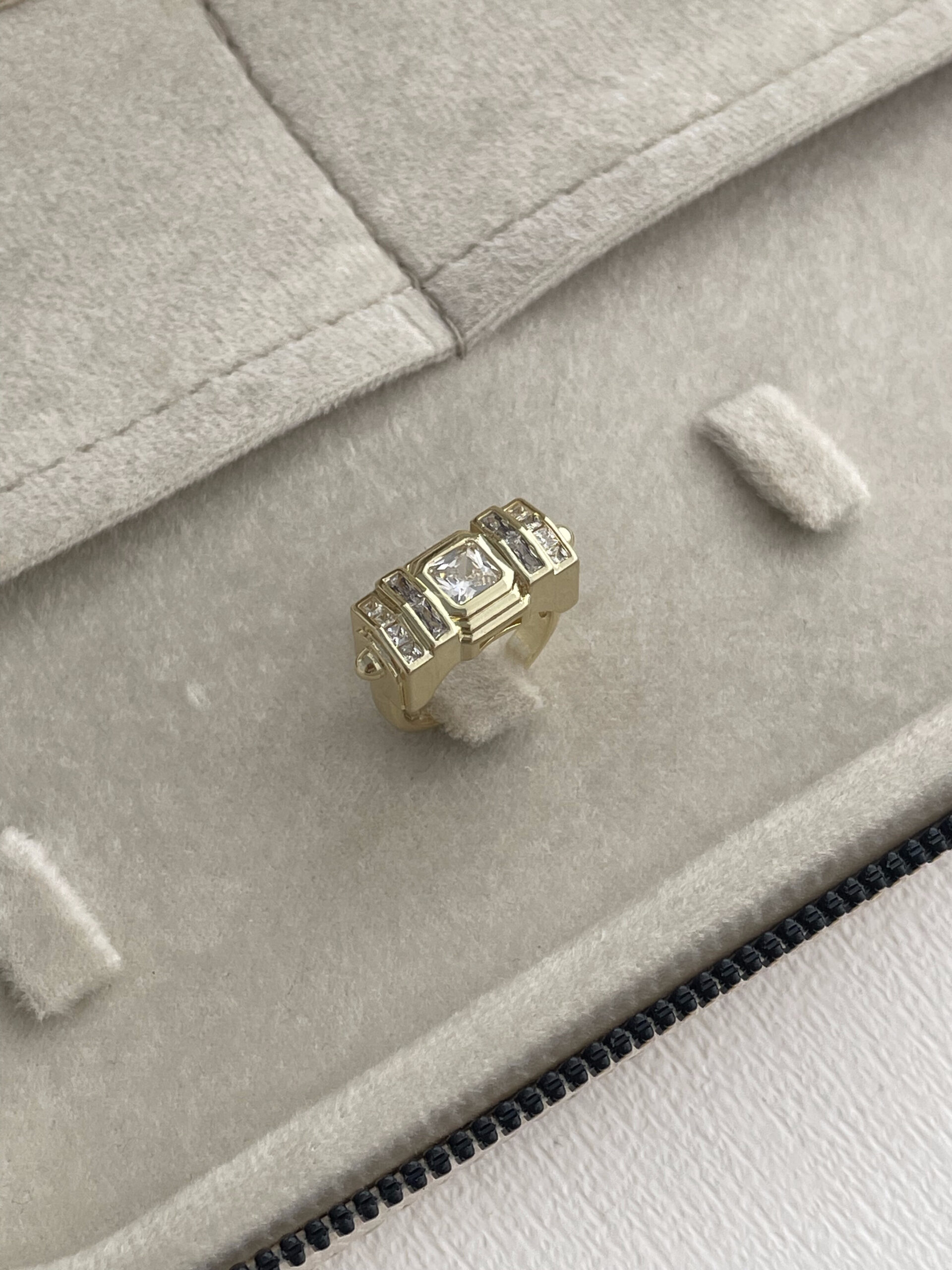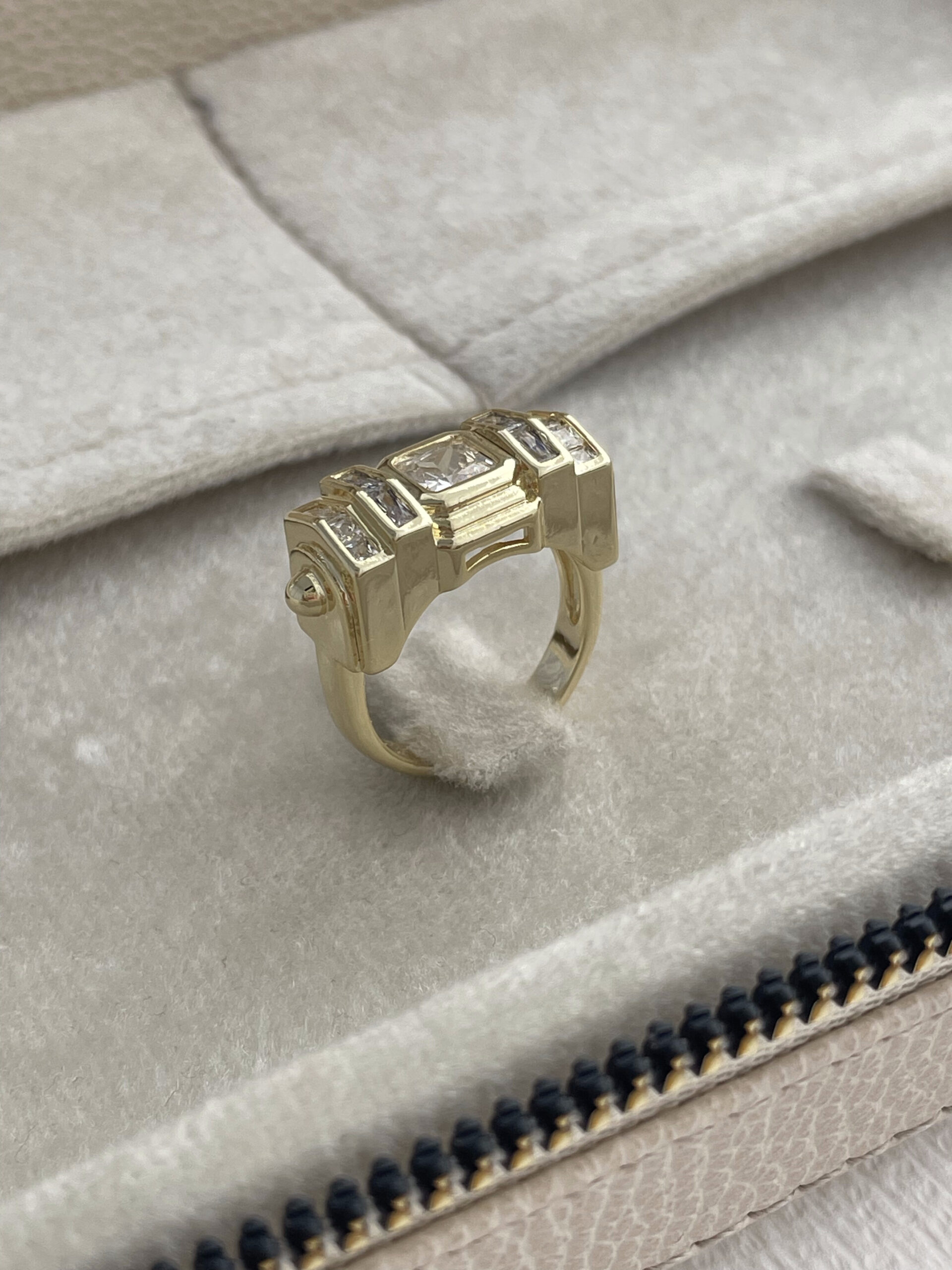 Özel Seri Geometrik Tasarım Baget Taşlı Ayarlanabilir Gold Yüzük