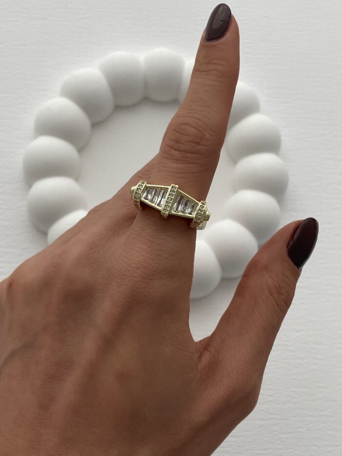 Özel Seri Geometrik Tasarım Baget&Zirkon Taşlı Ayarlanabilir Gold Yüzük