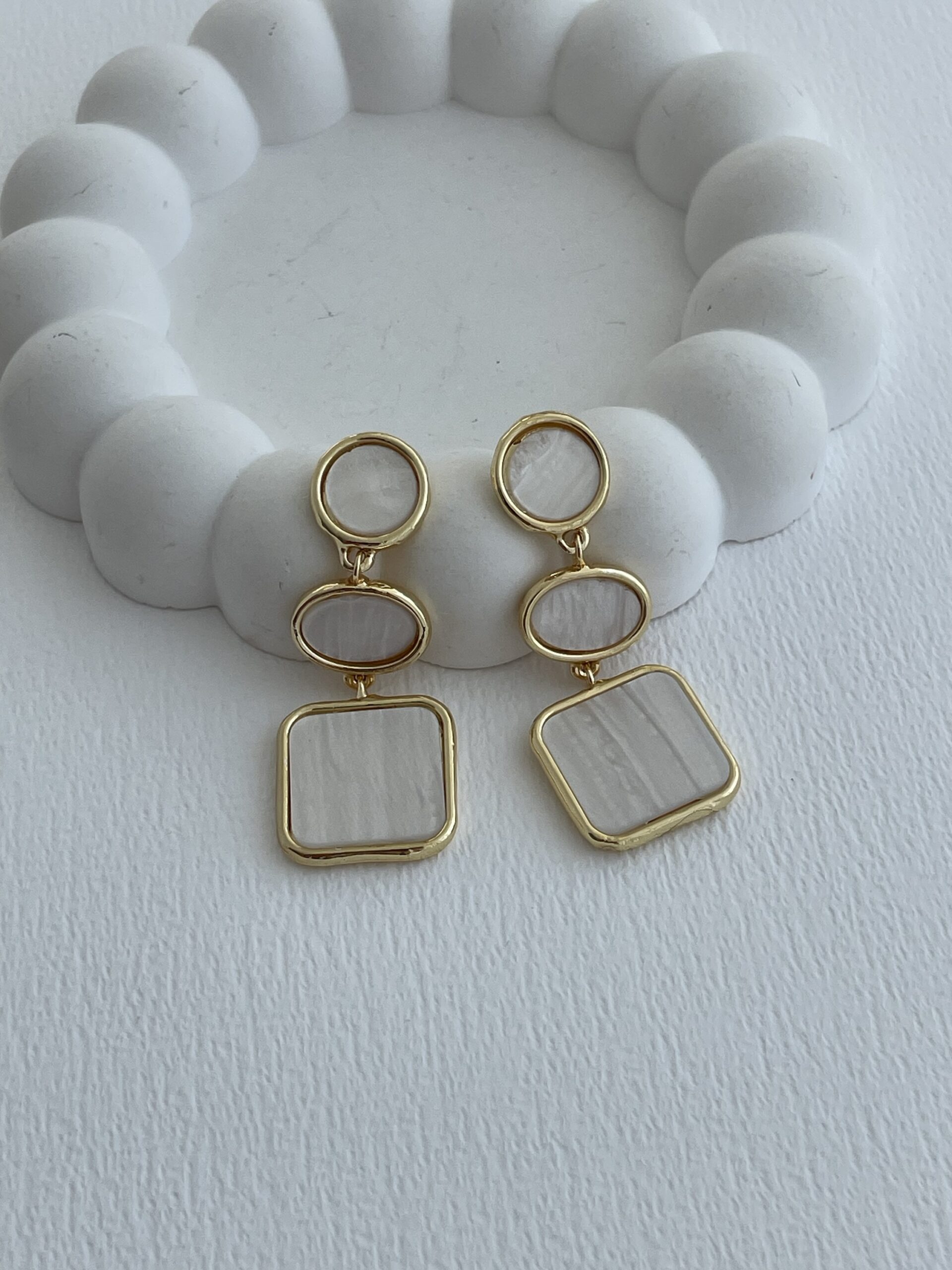Özel Seri Geometrik Tasarım Beyaz Hawai Küpe