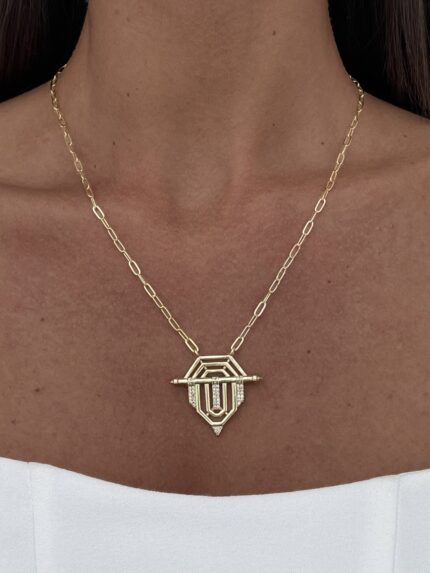 Özel Seri Geometrik Tasarım Gold Choker Kolye