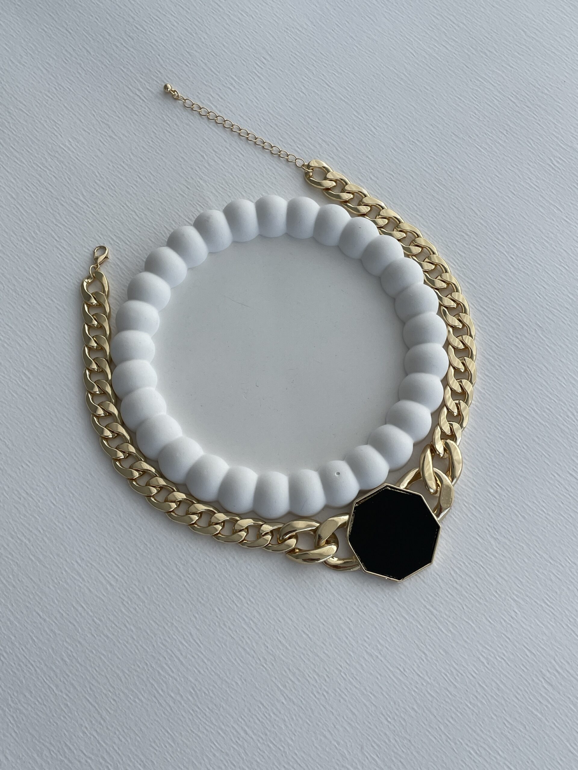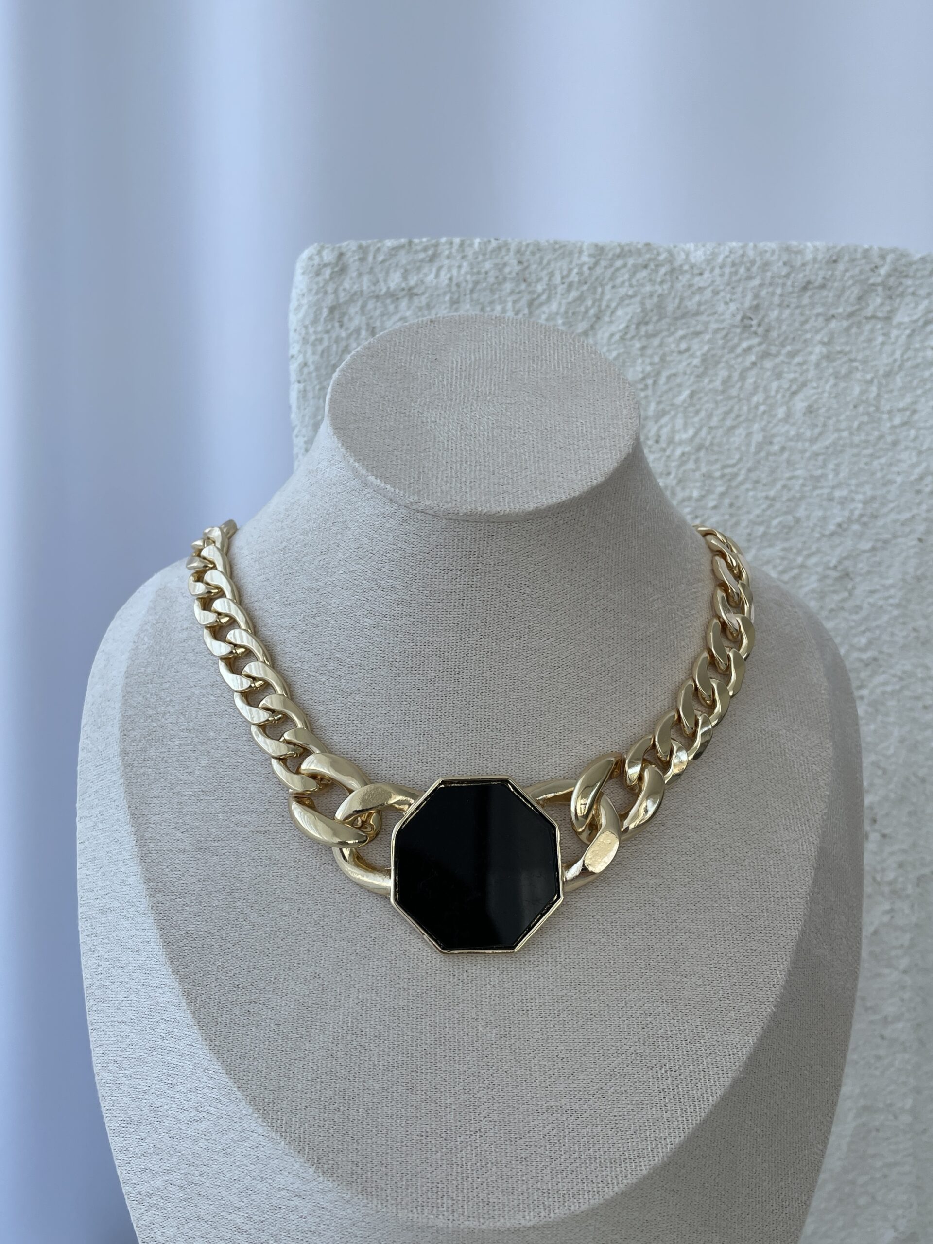 Özel Seri Geometrik Tasarım Siyah & Gold Gurmet Zincir Kolye