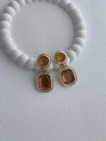 Özel Seri Geometrik Tasarım Kahverengi Mineli MNG Gold Küpe