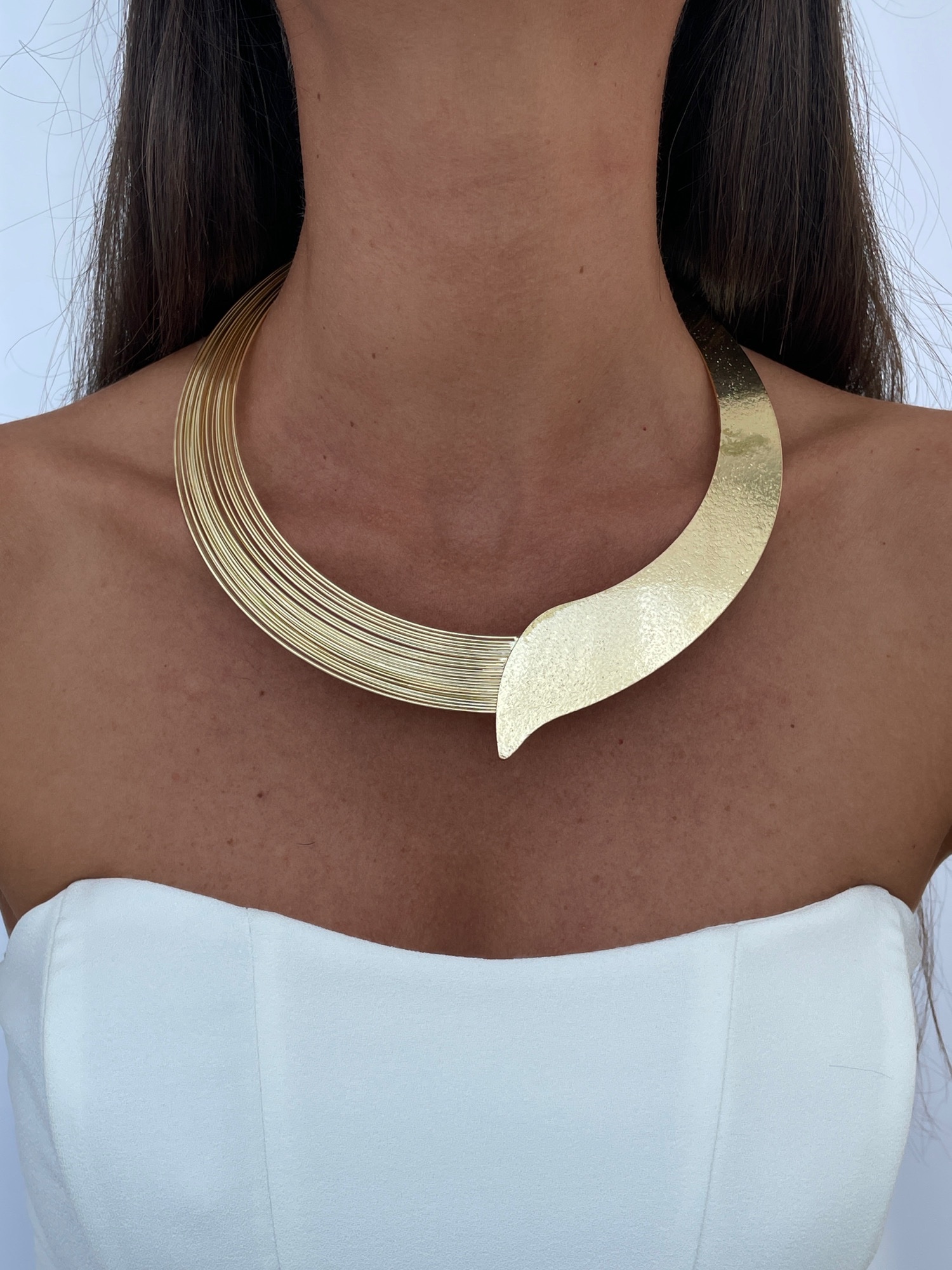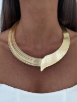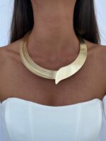 Özel Seri Geometrik Tasarım Kalın Gold Choker Kolye