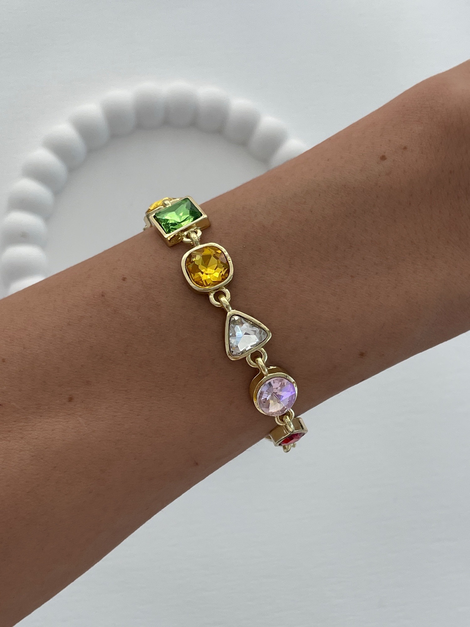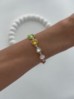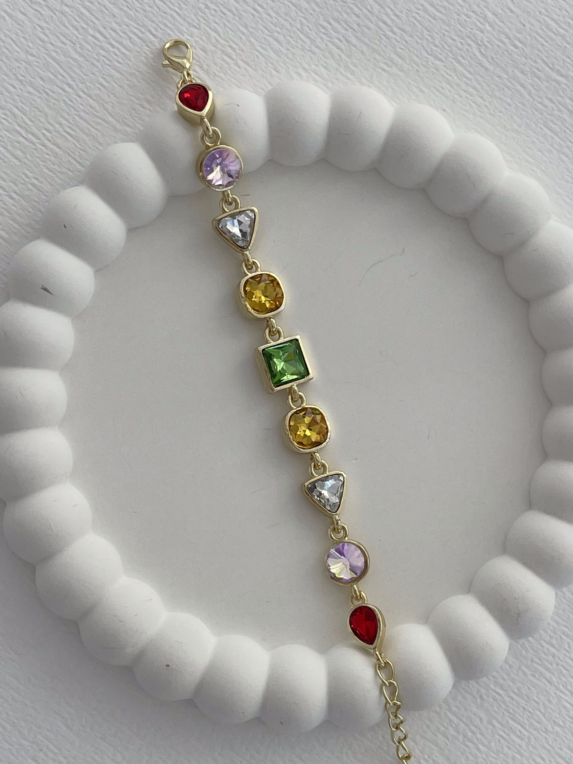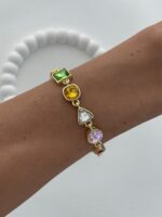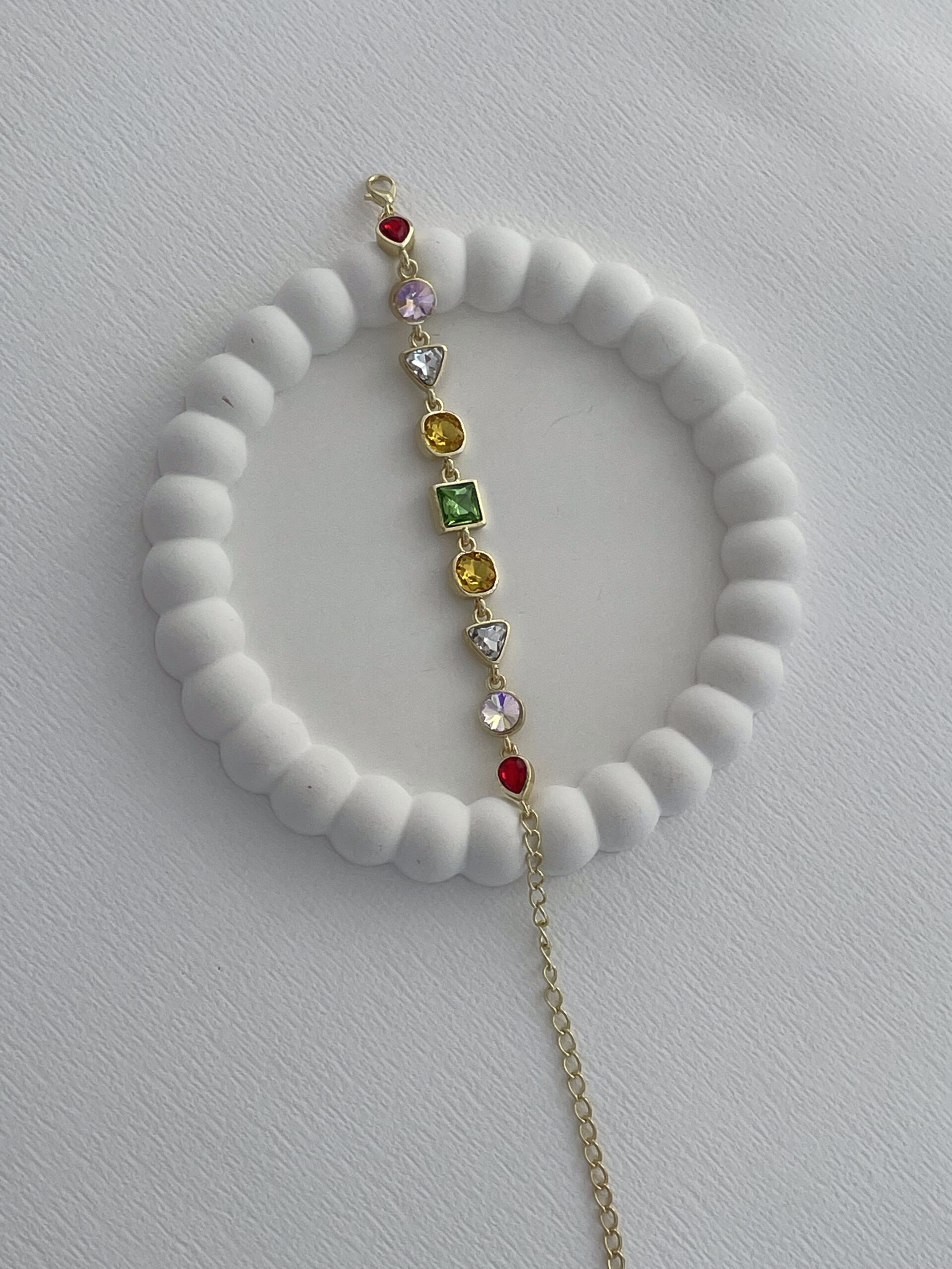Özel Seri Geometrik Tasarım Renkli Baget Taş Detay Gold Bileklik