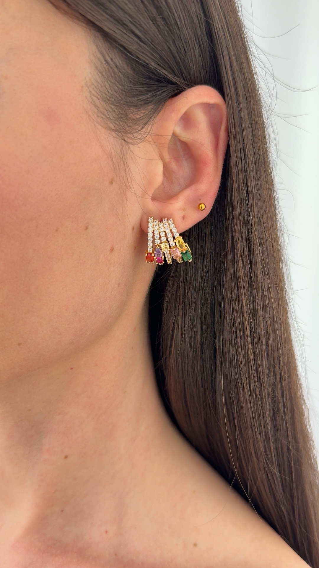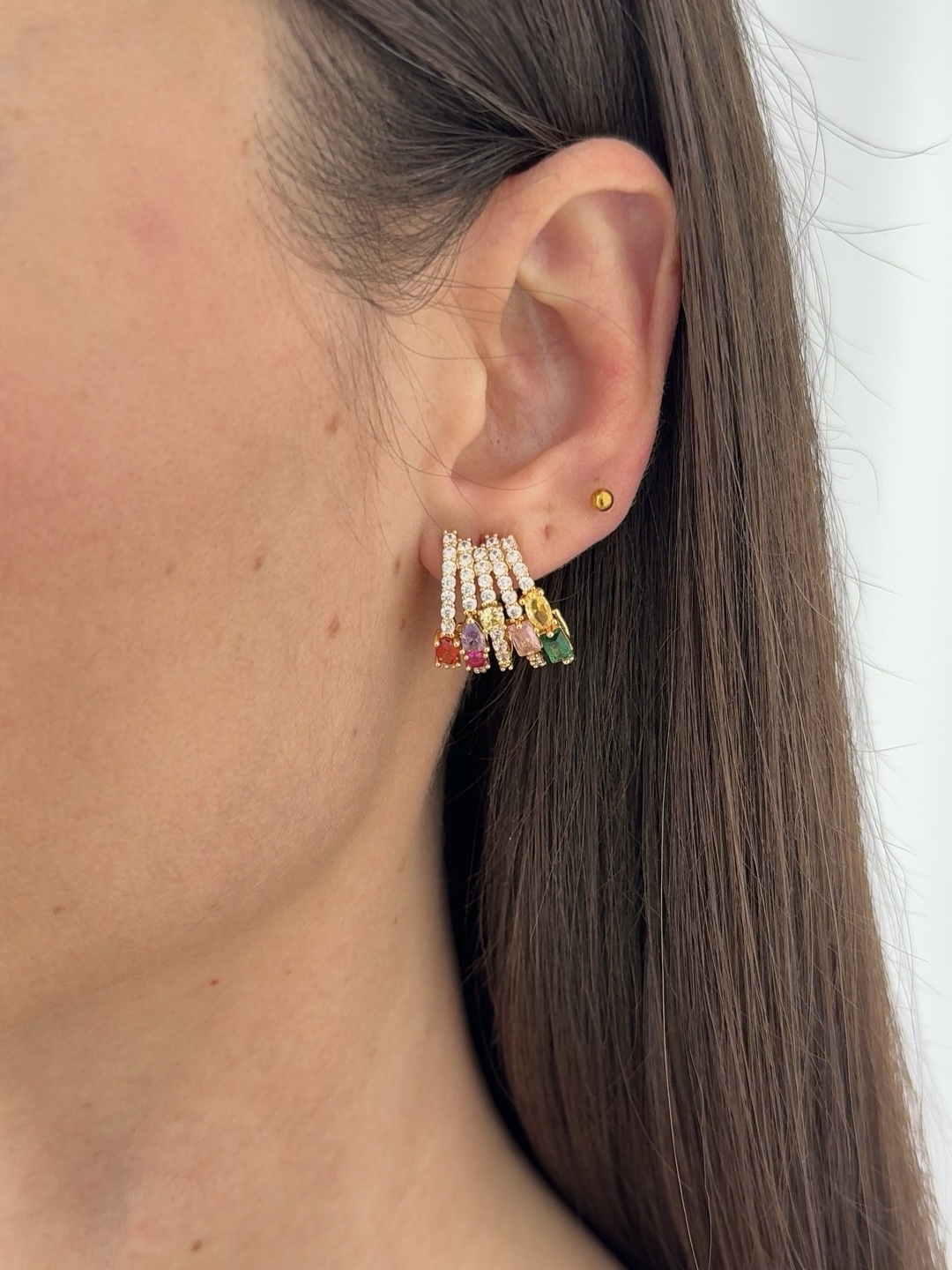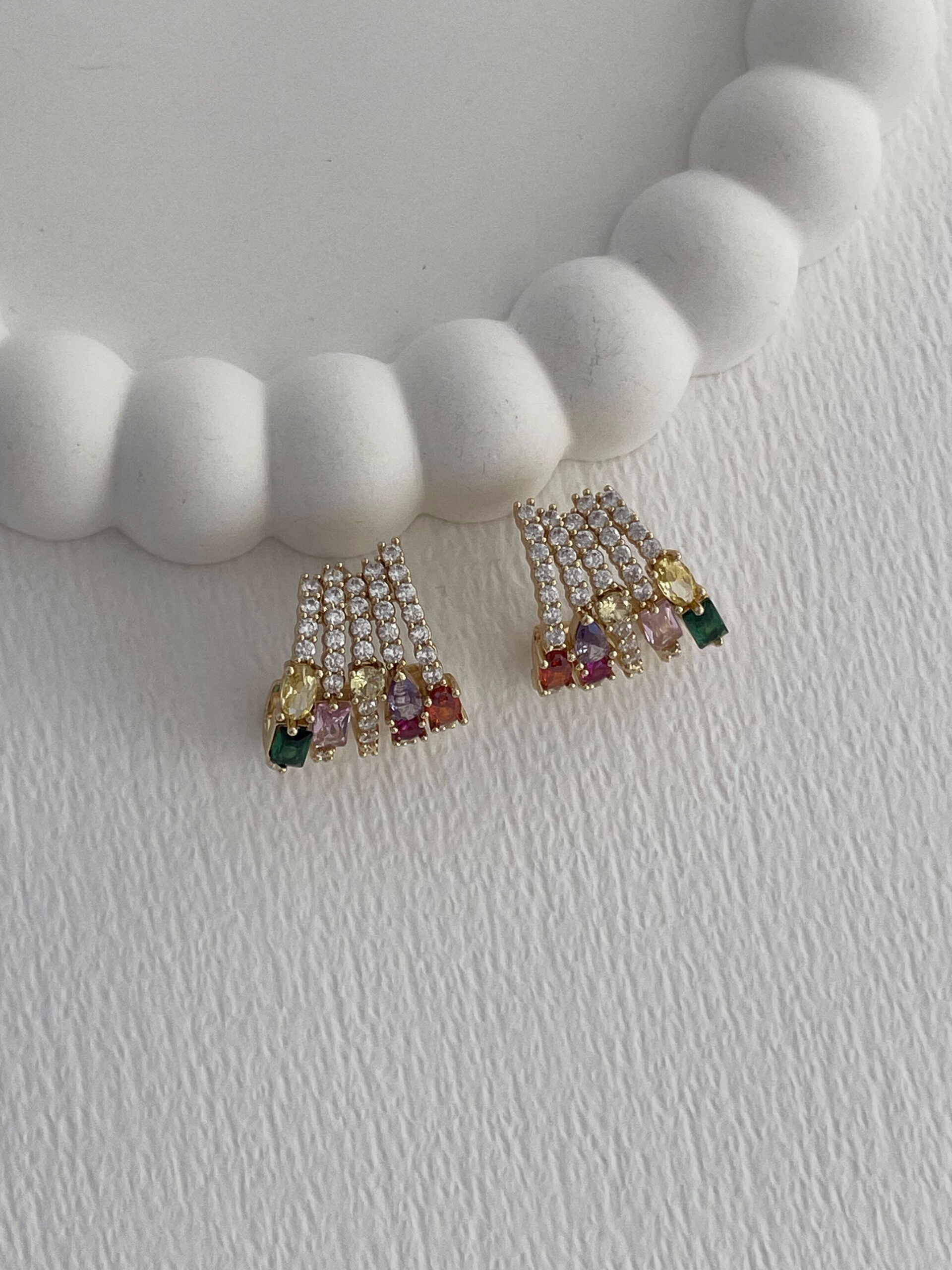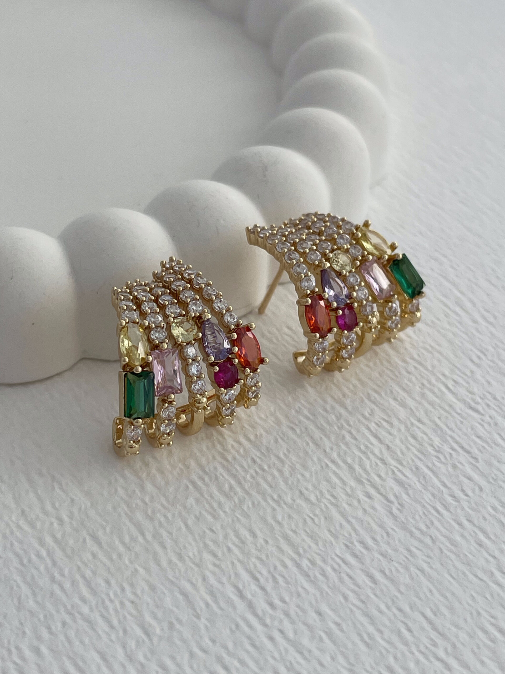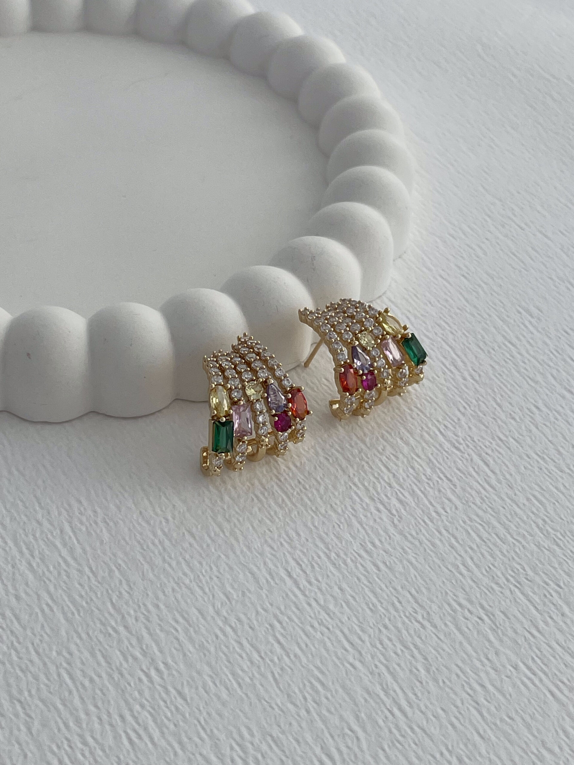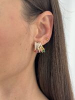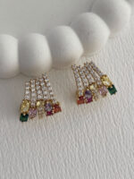 Özel Seri Geometrik Tasarım Renkli Zirkon Taş Detay Gold Küpe