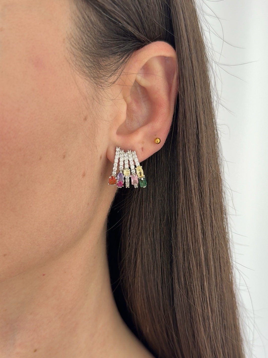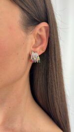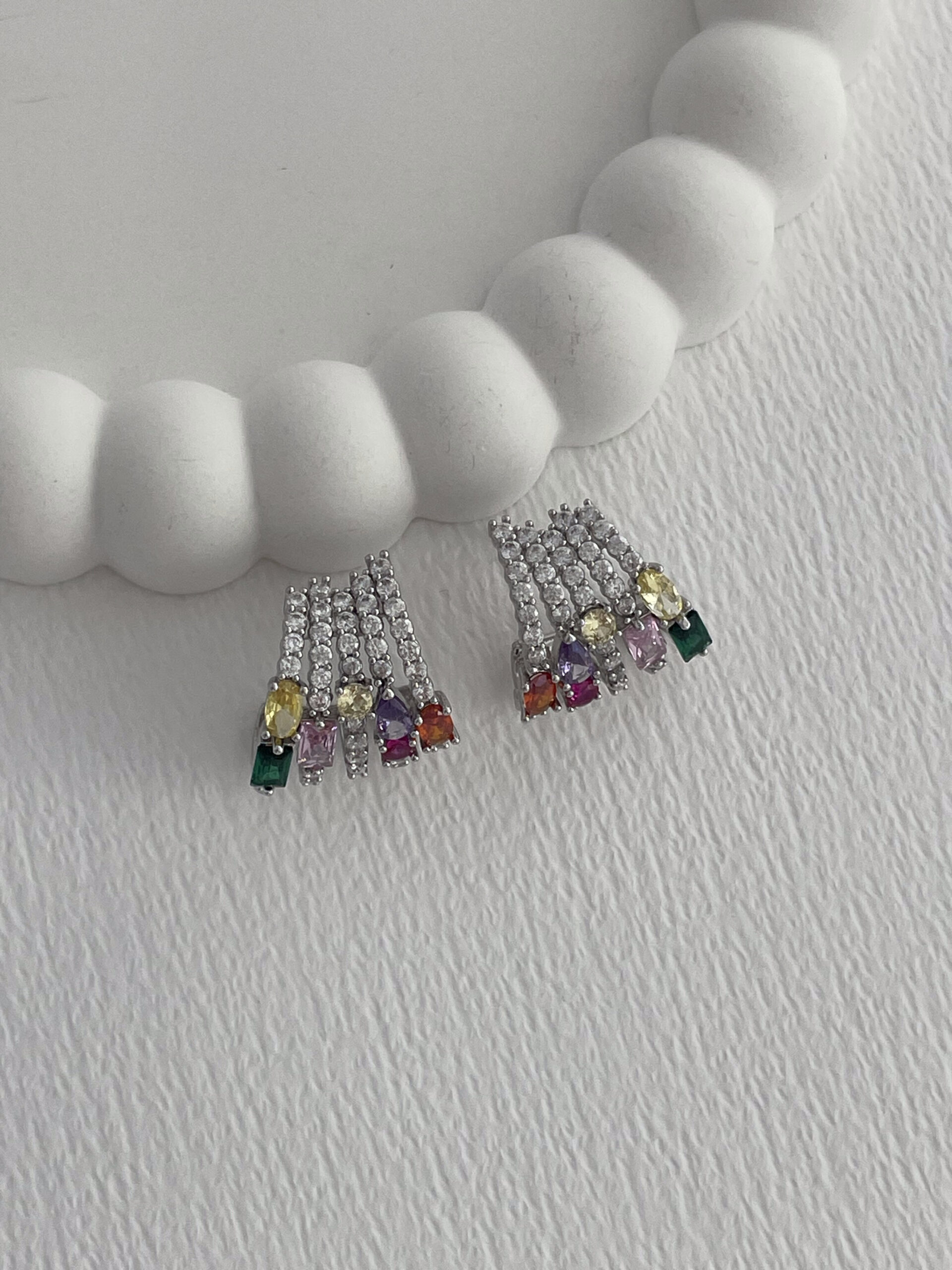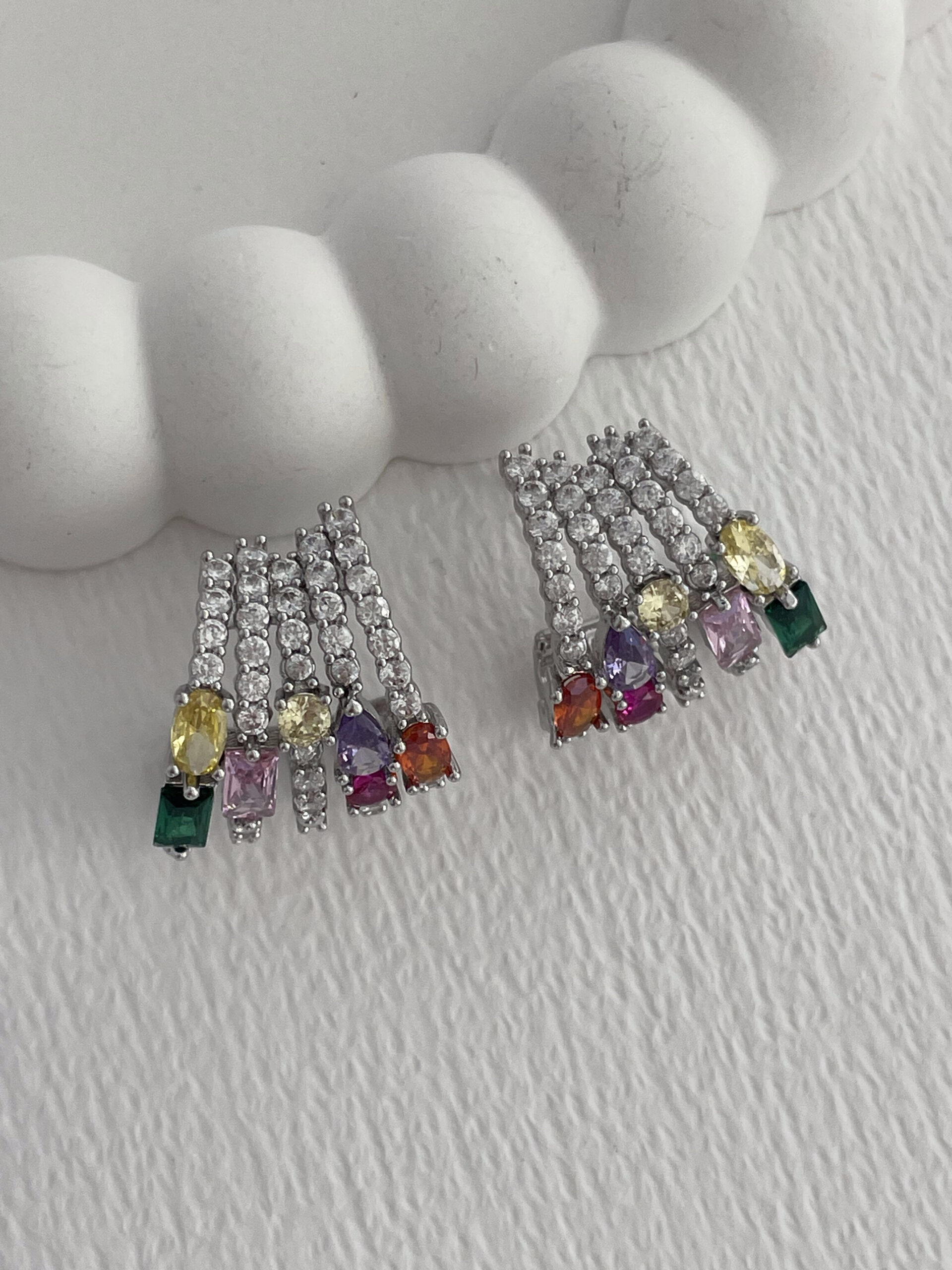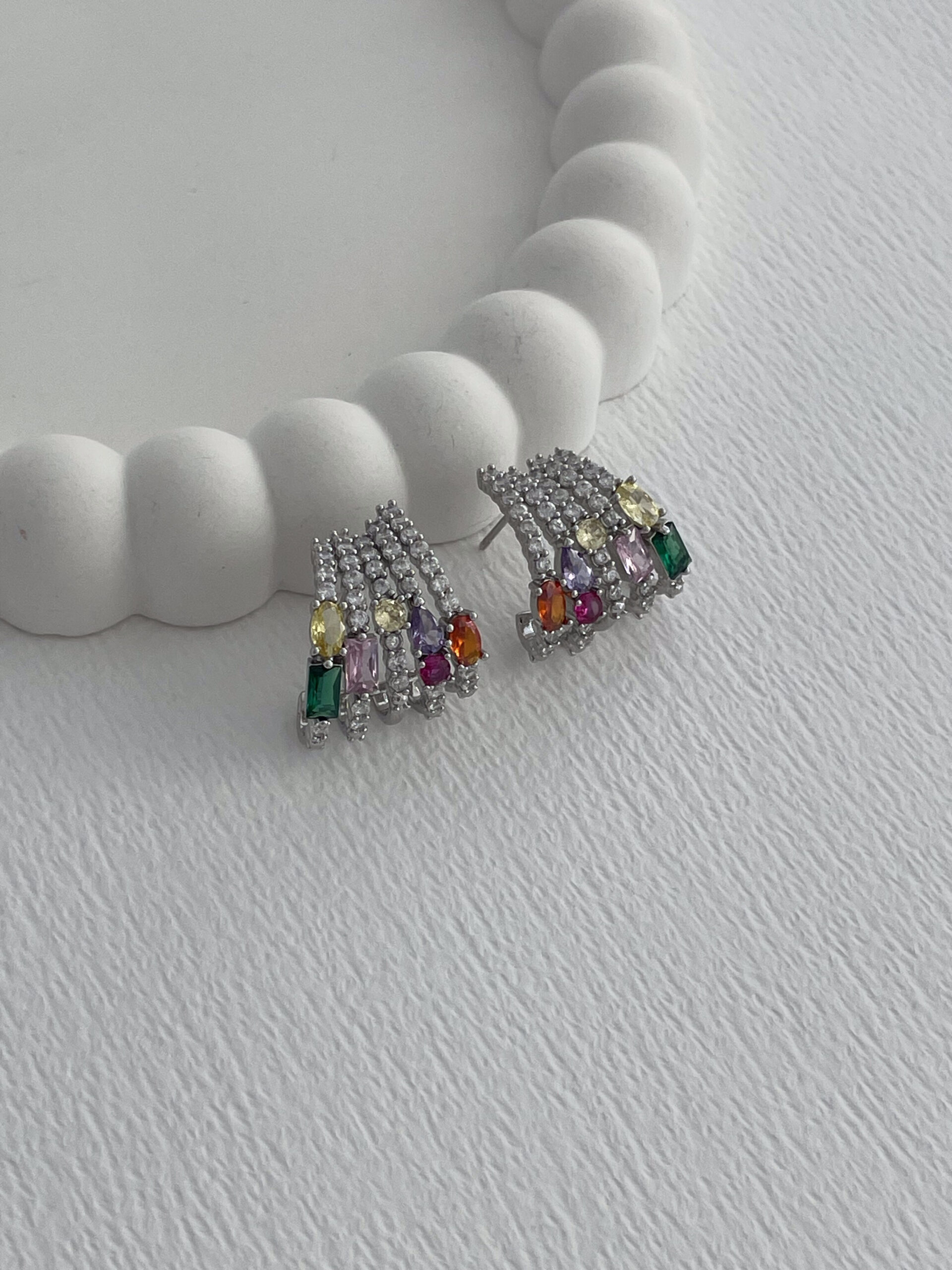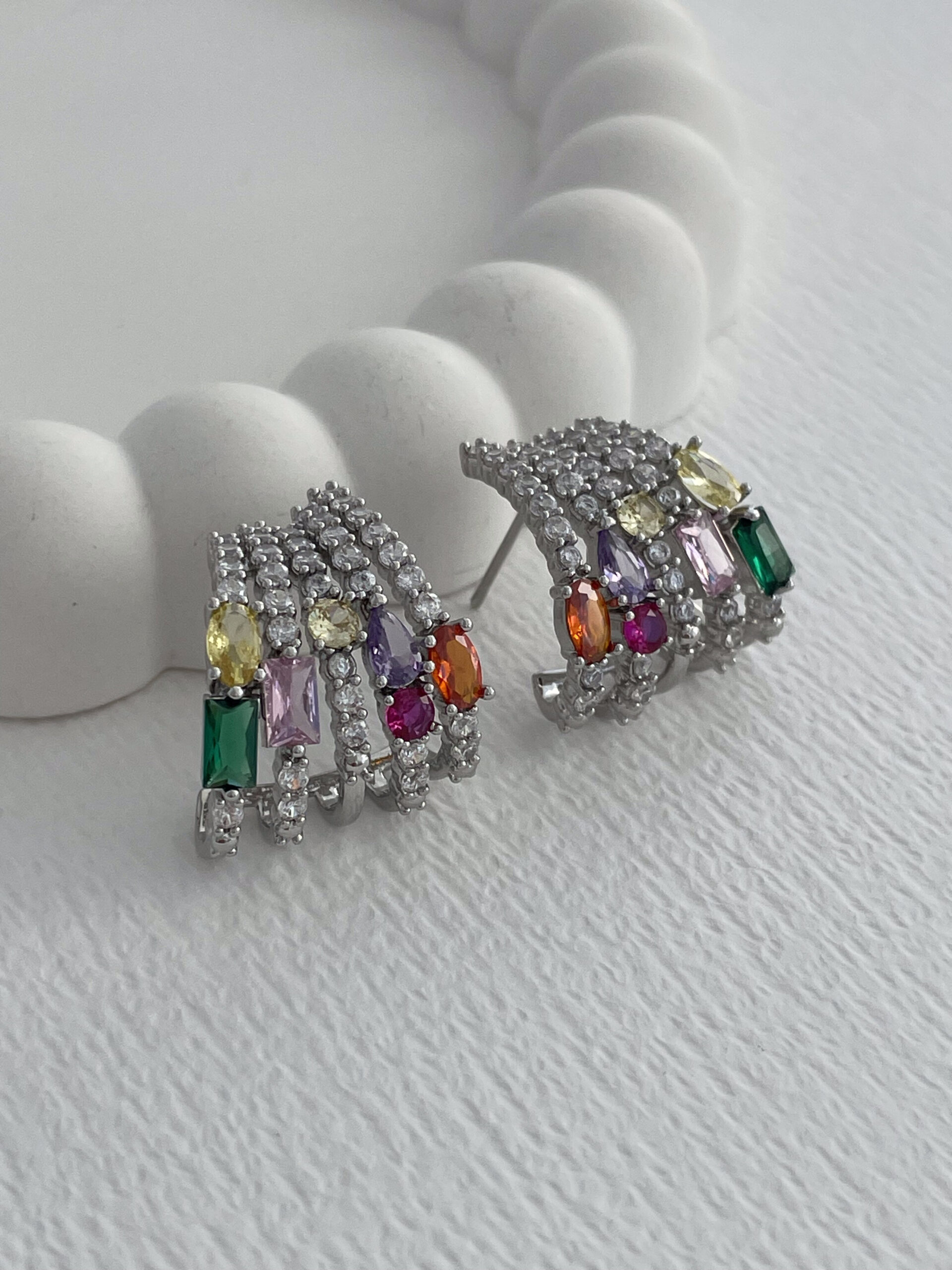 Özel Seri Geometrik Tasarım Renkli Zirkon Taş Detay Gümüş Küpe