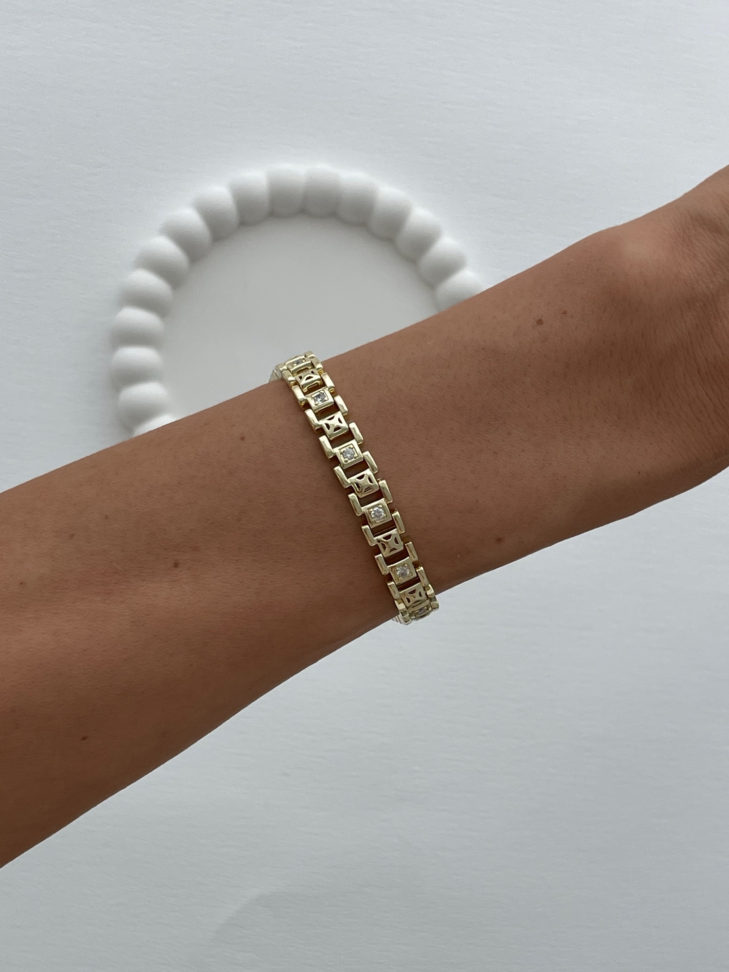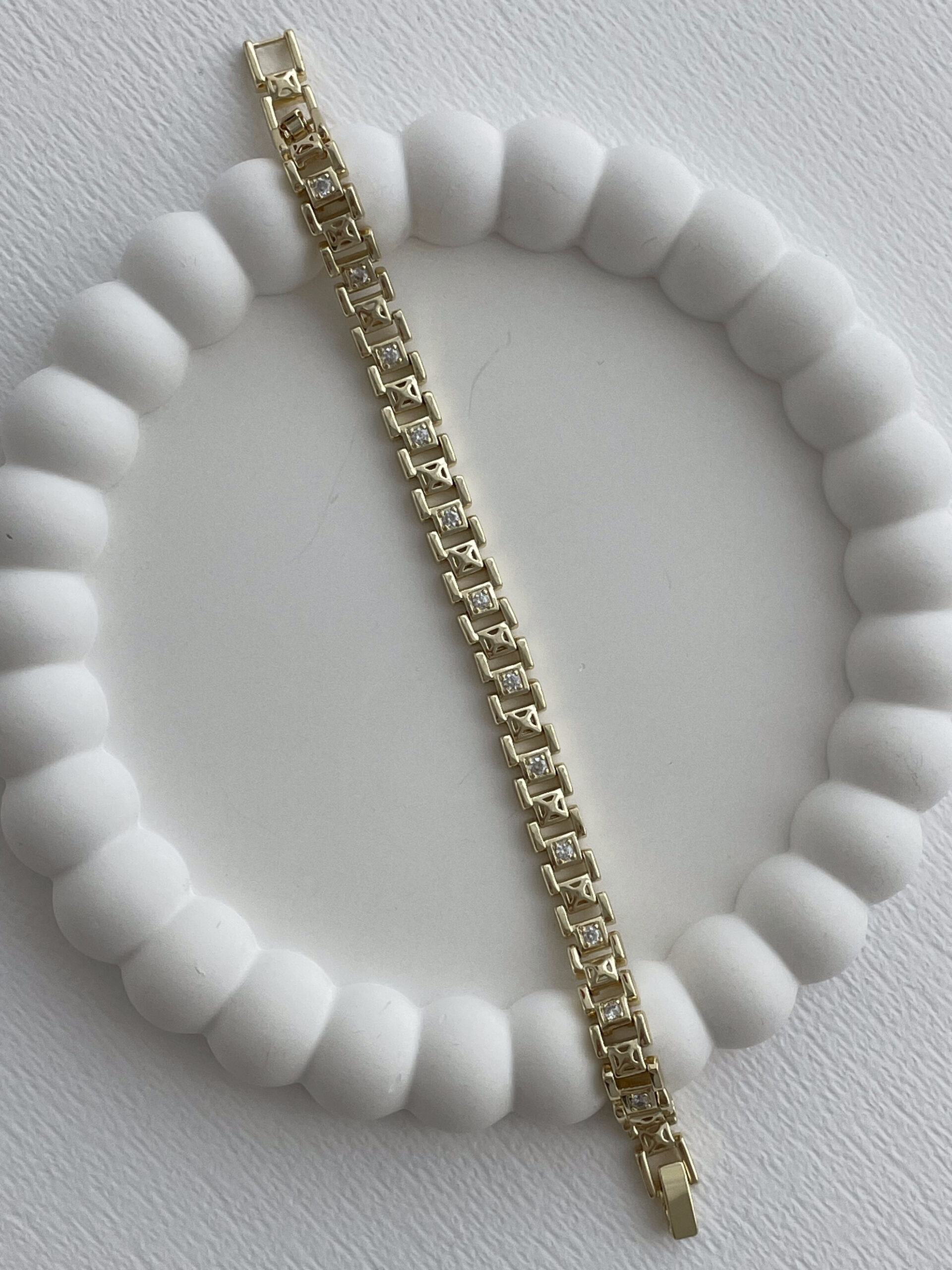 Özel Seri Geometrik Tasarım Zirkon Taşlı Gold Bileklik