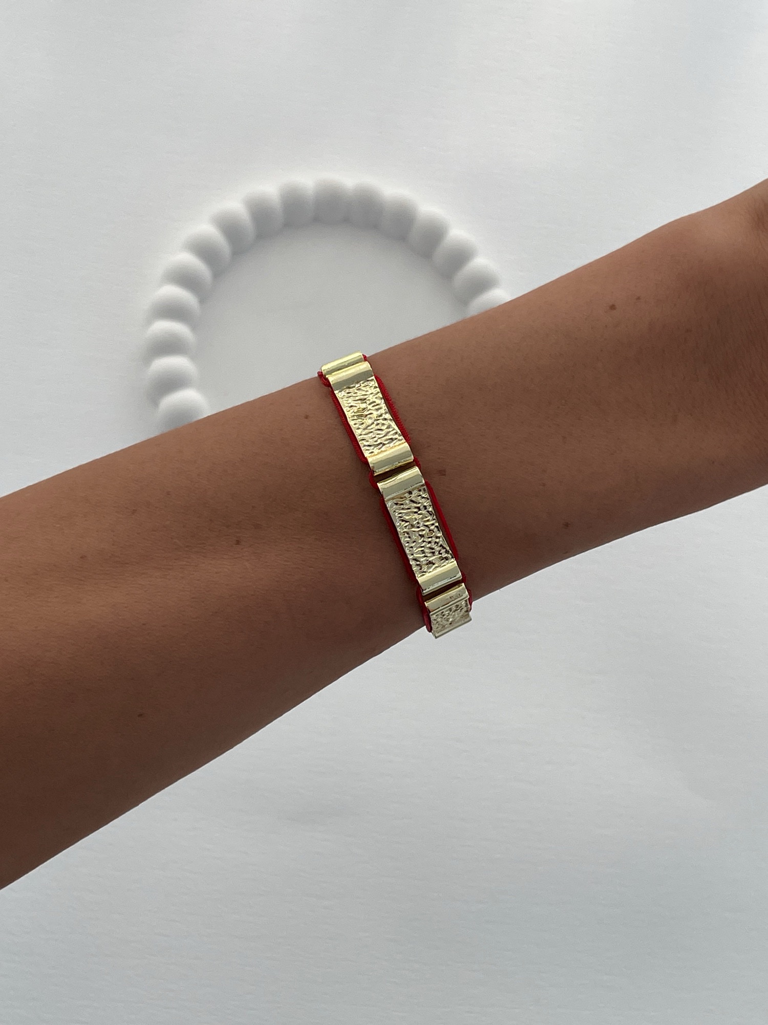 Özel Seri Gold Desenli Geometrik Tasarım Asansörlü Kırmızı Bileklik