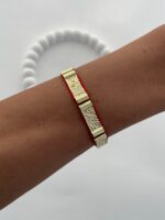 Özel Seri Gold Desenli Geometrik Tasarım Asansörlü Kırmızı Bileklik
