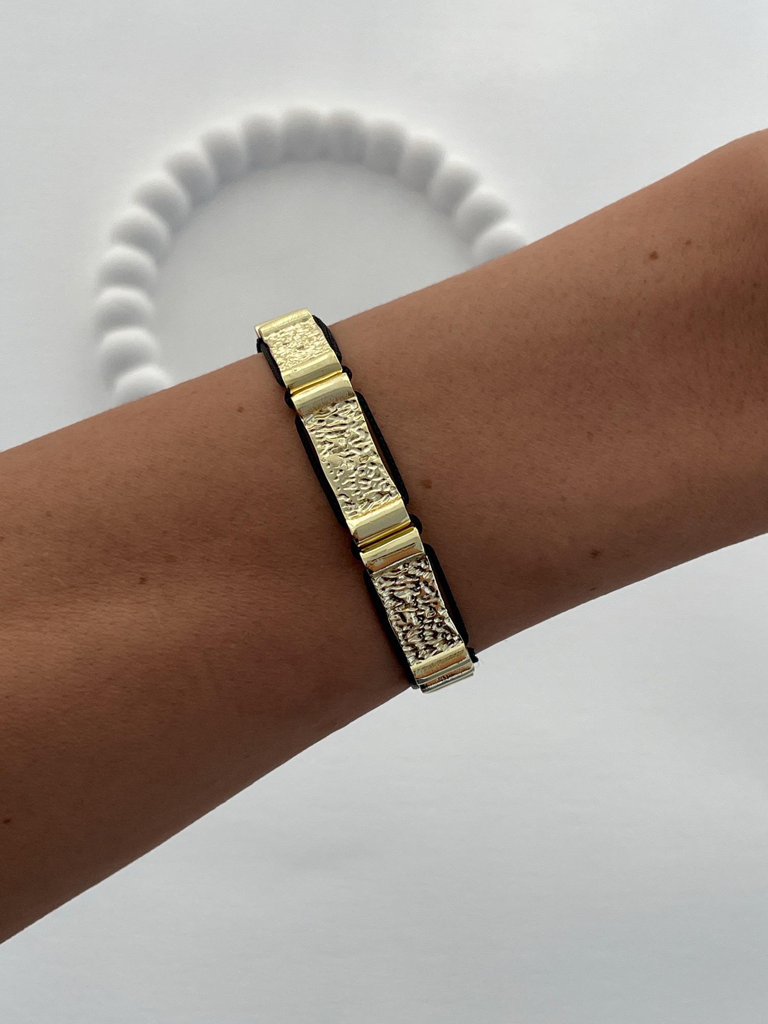 Özel Seri Gold Desenli Geometrik Tasarım Asansörlü Siyah Bileklik