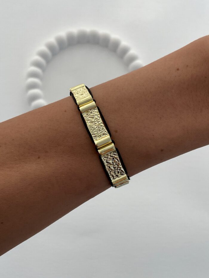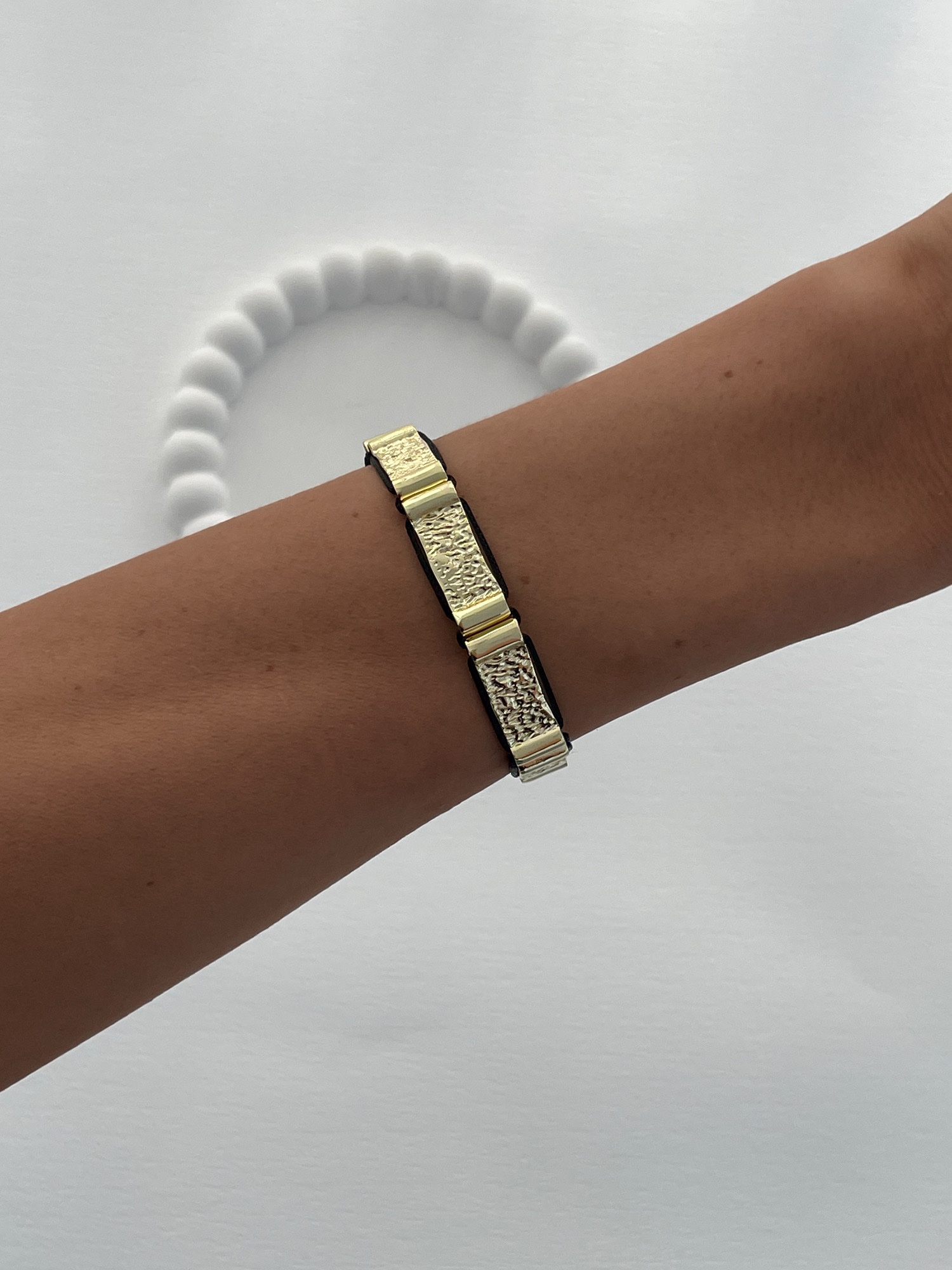 Özel Seri Gold Desenli Geometrik Tasarım Asansörlü Siyah Bileklik