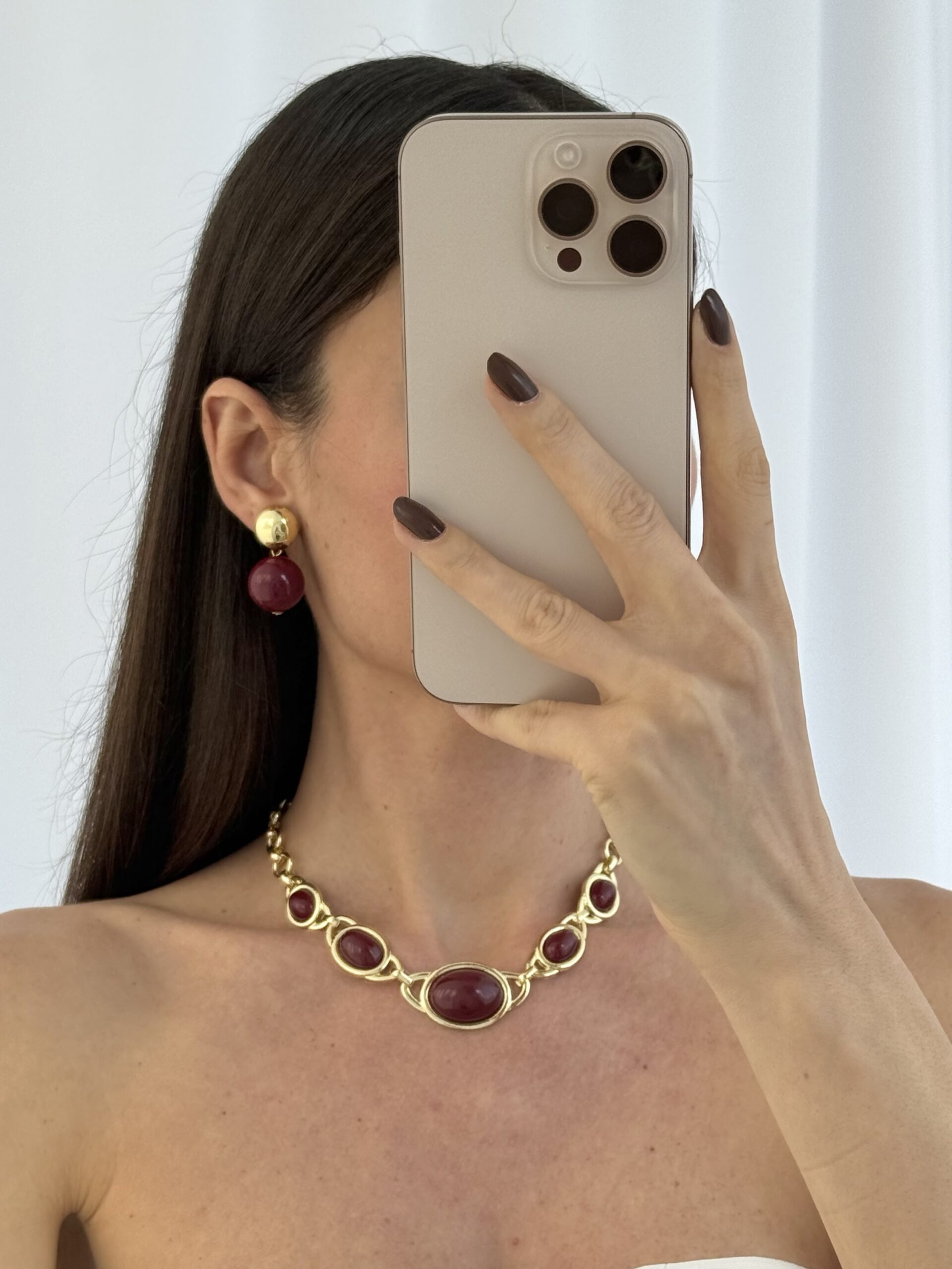 Özel Seri Gold Detay Bordo Top Küpe