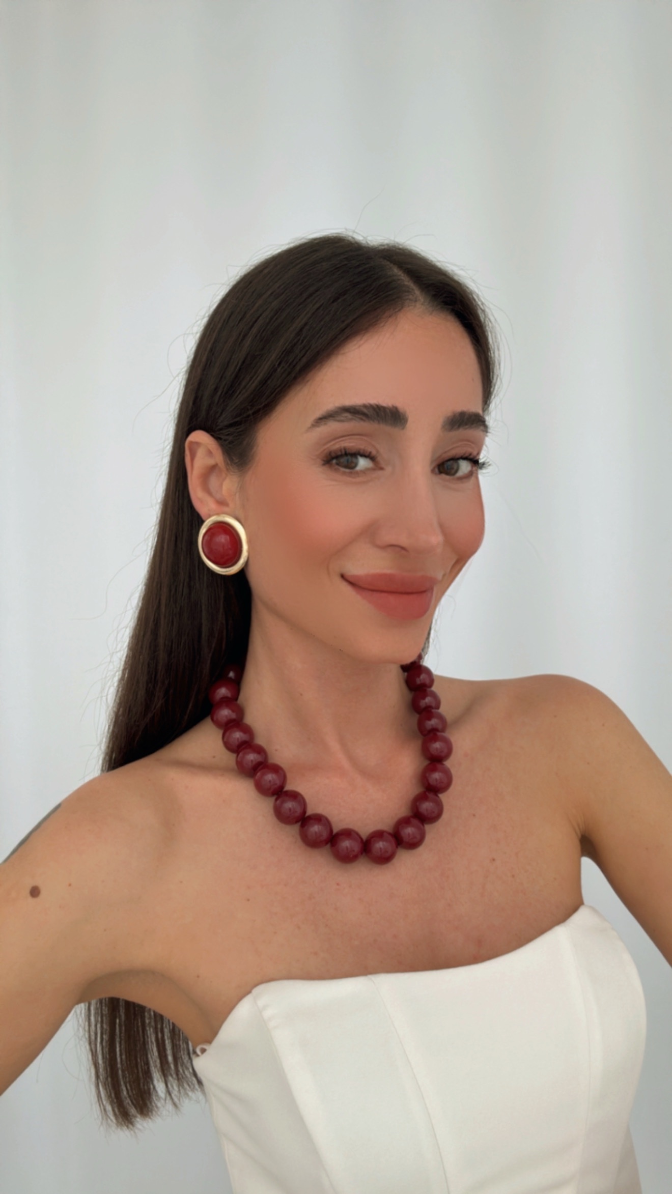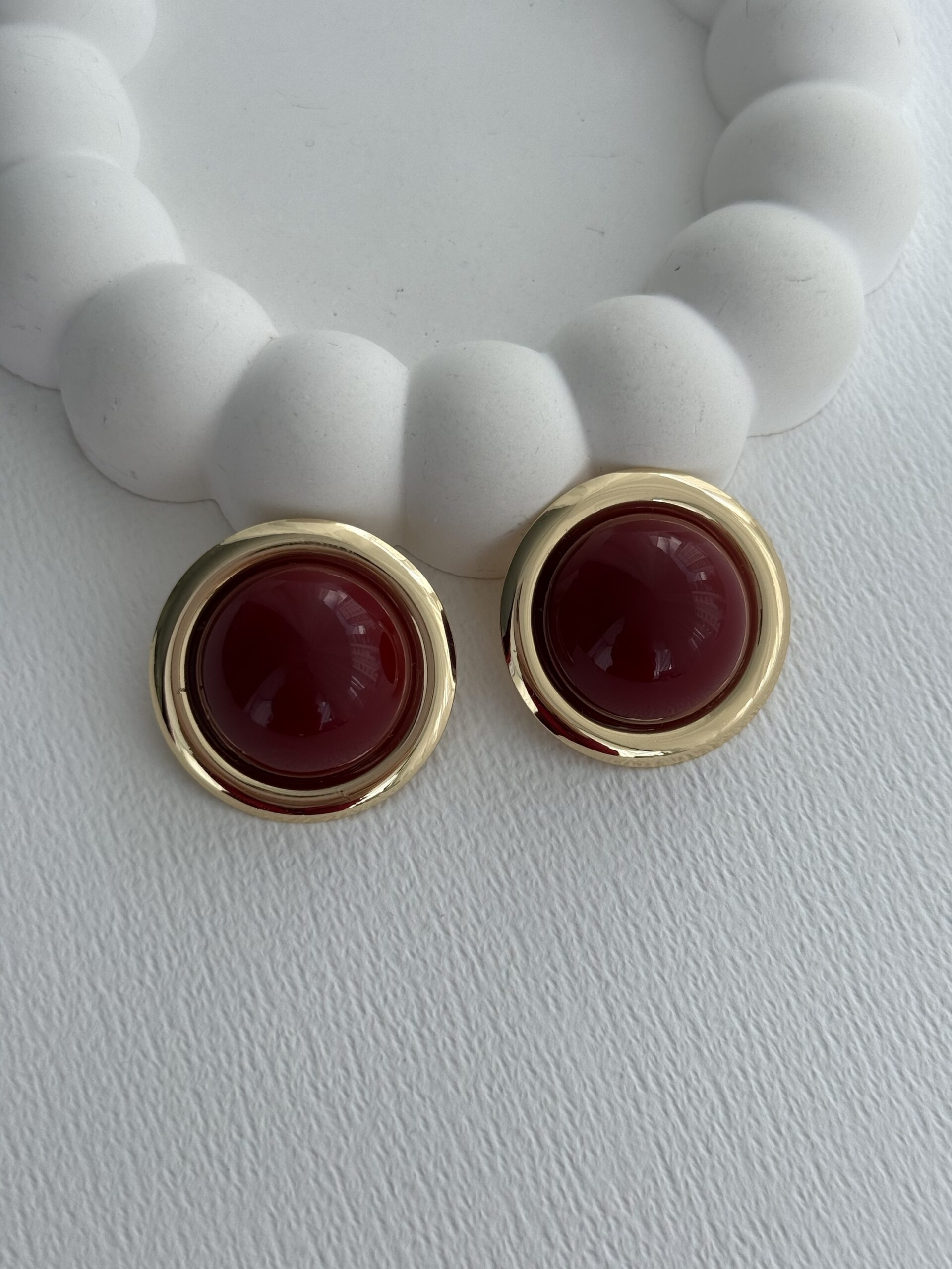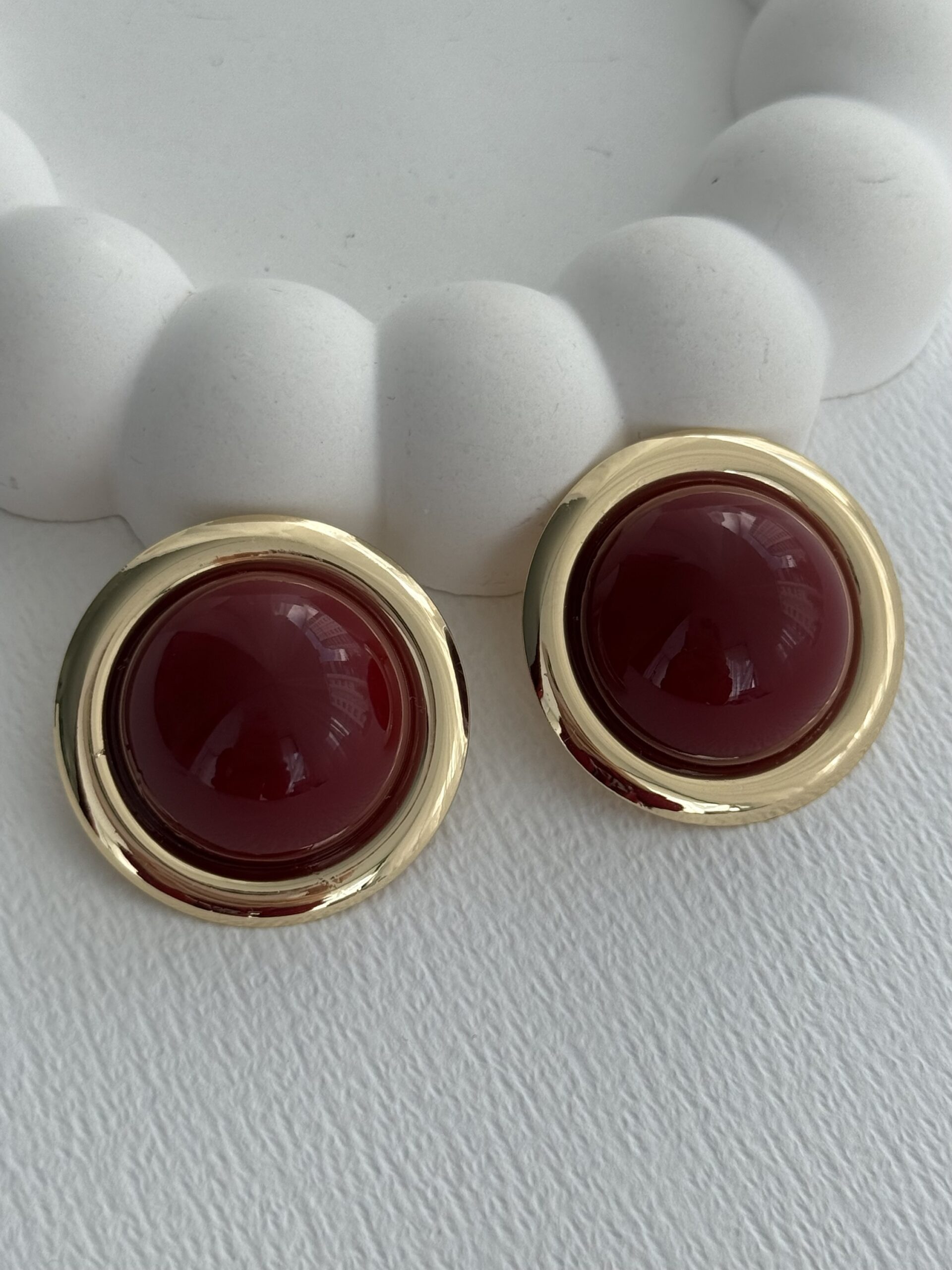 Özel Seri Gold Detay Büyük Yuvarlak Bordo Küpe