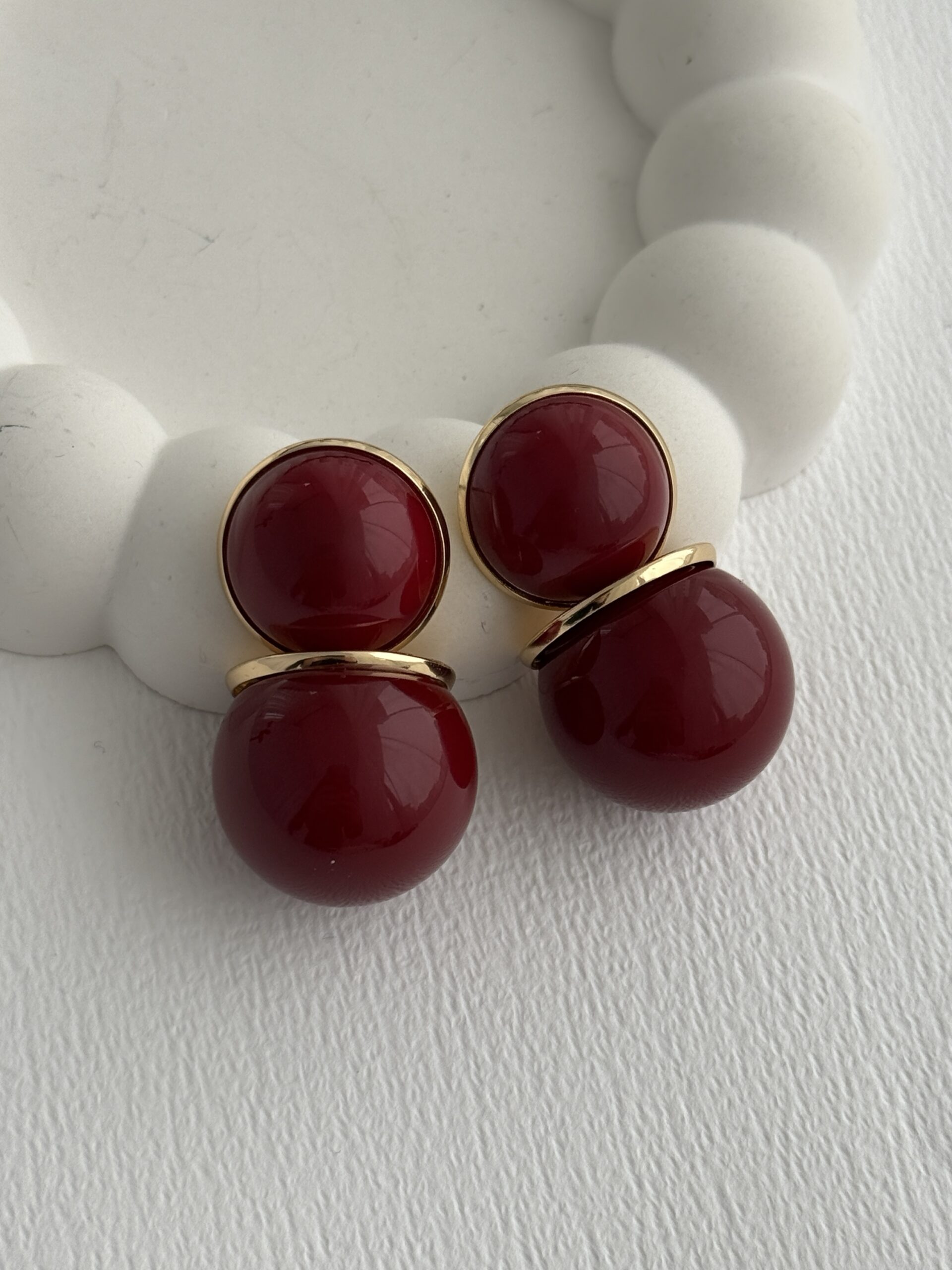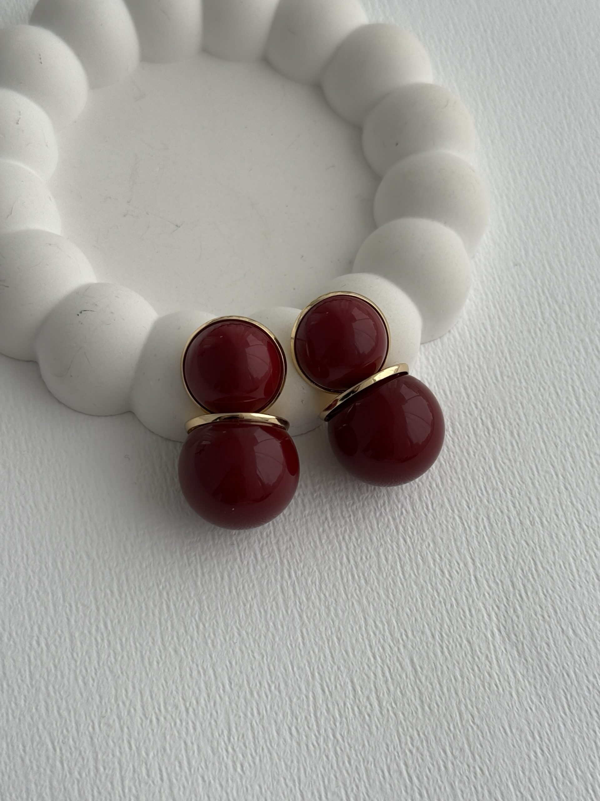 Özel Seri Gold Detay İkili Bordo Top Küpe