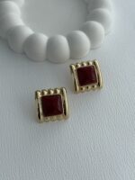 Özel Seri Retro Tasarım Gold Detay Kare Bordo Küpe