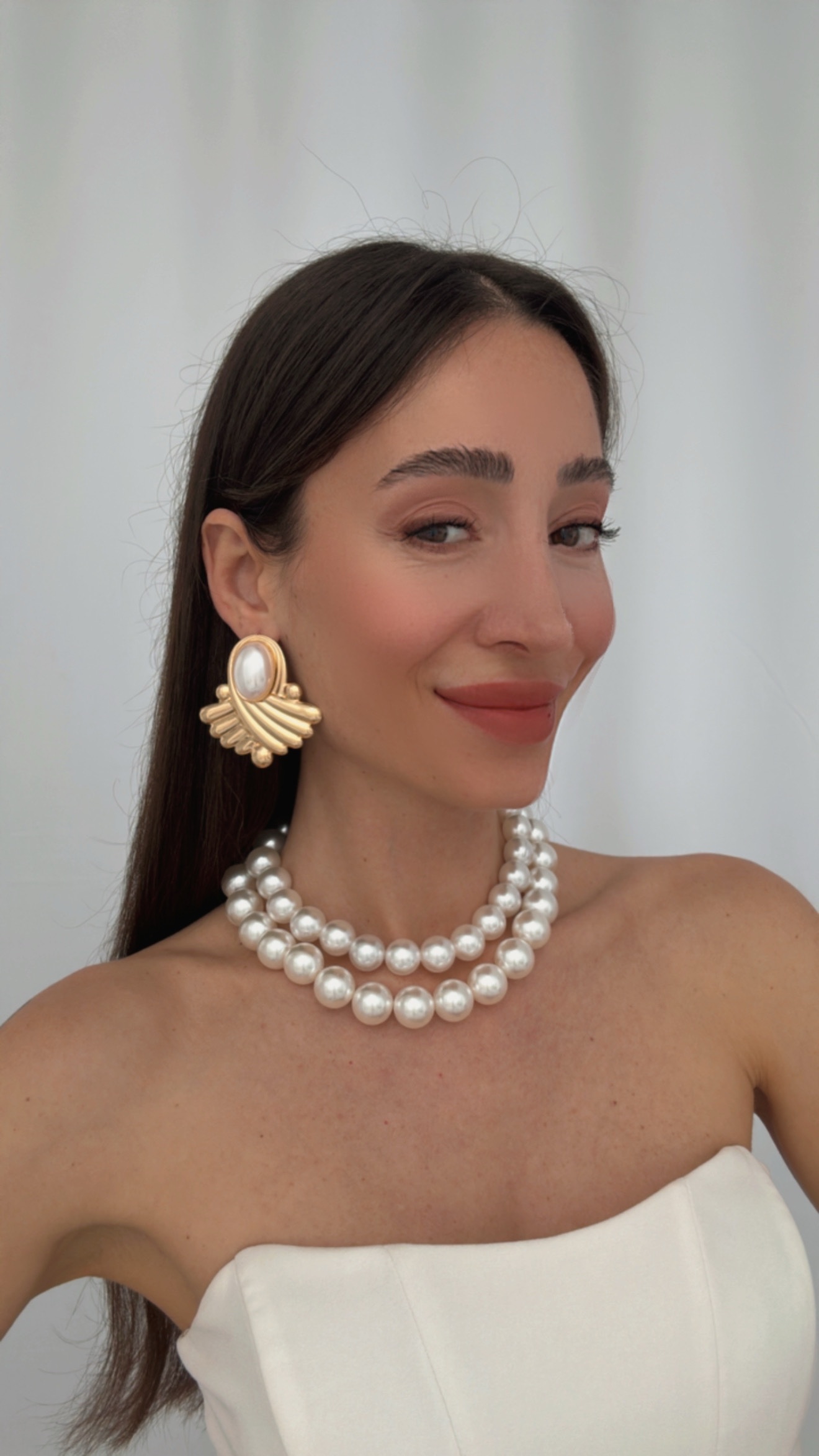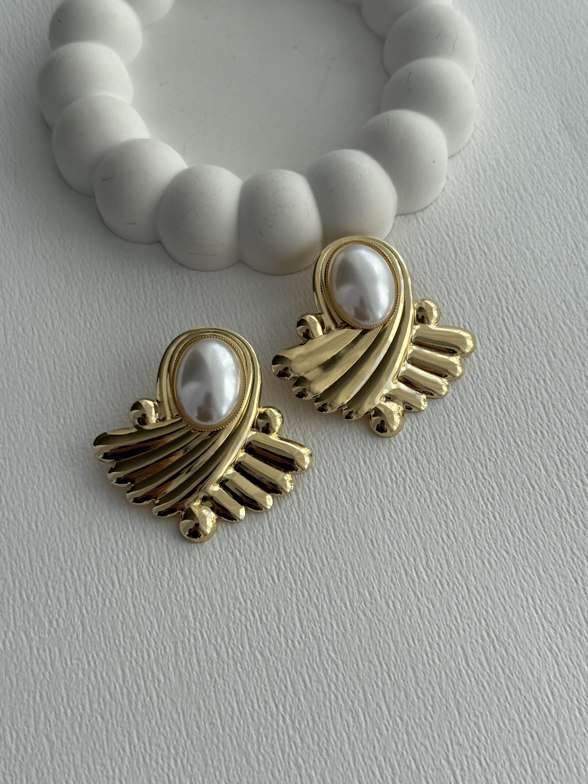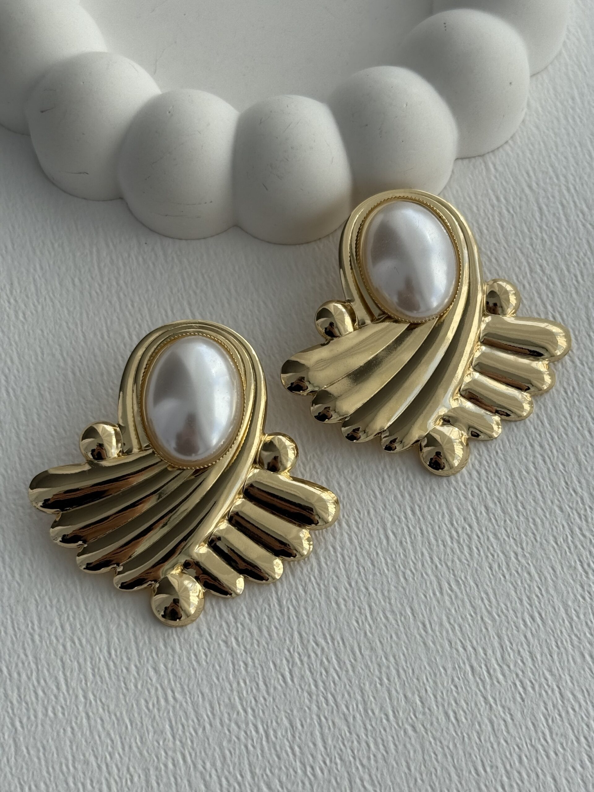 Özel Seri Gold Detay Oval Vintage İnci Küpe