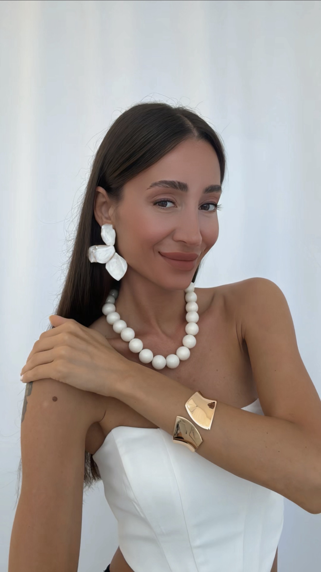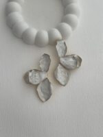Özel Seri Gold Detay Yaprak Tasarım Krem Maksi Boy Küpe