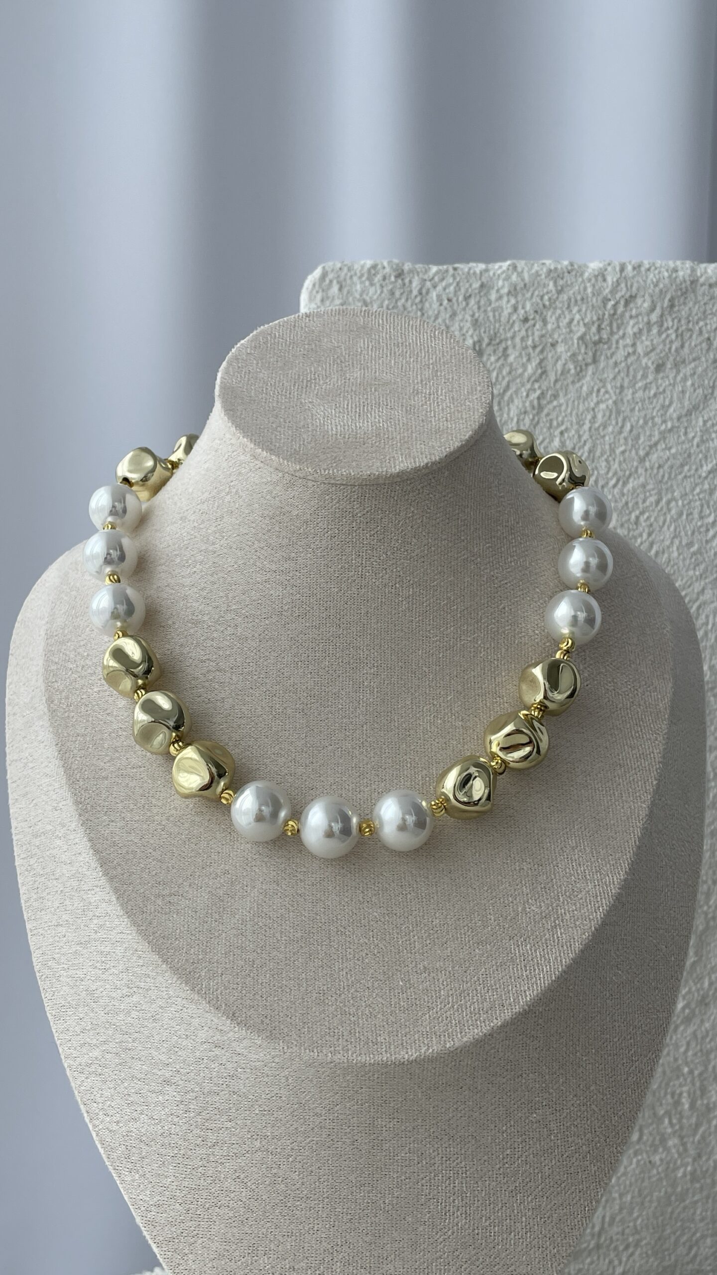 Özel Seri Gold Ezme Boncuk İnci Kolye