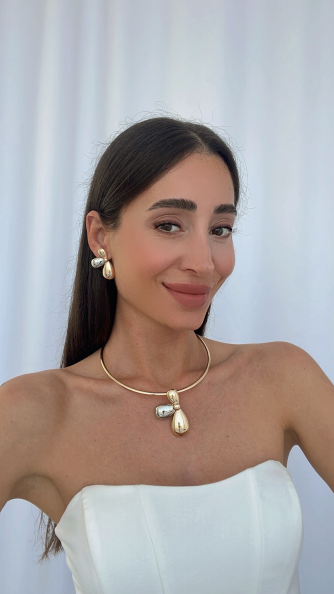 Özel Seri Gold & Gümüş Çiçek Tasarım Küpe